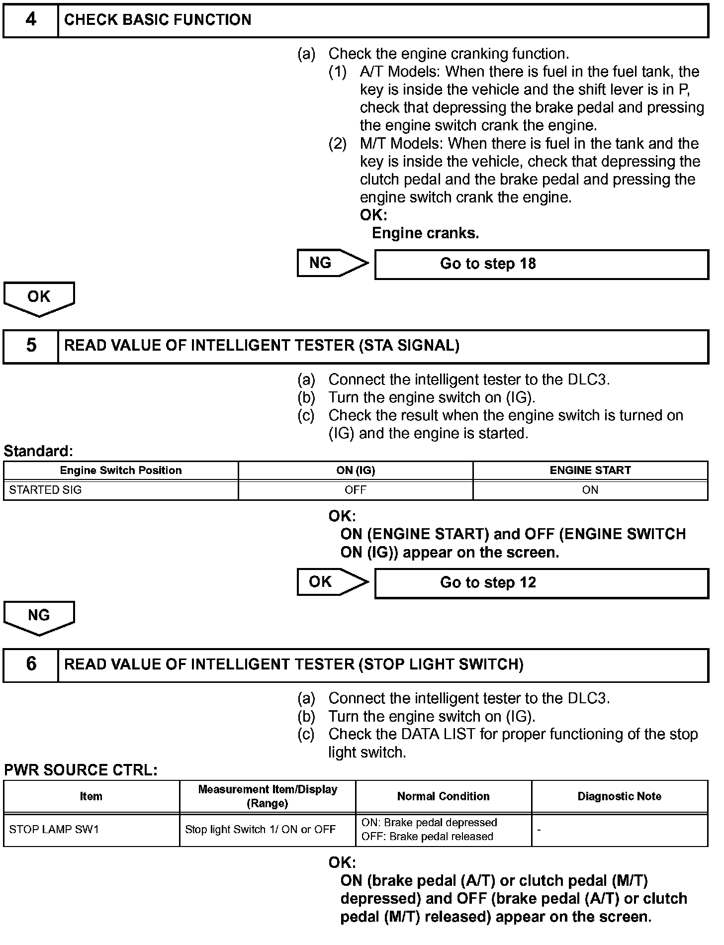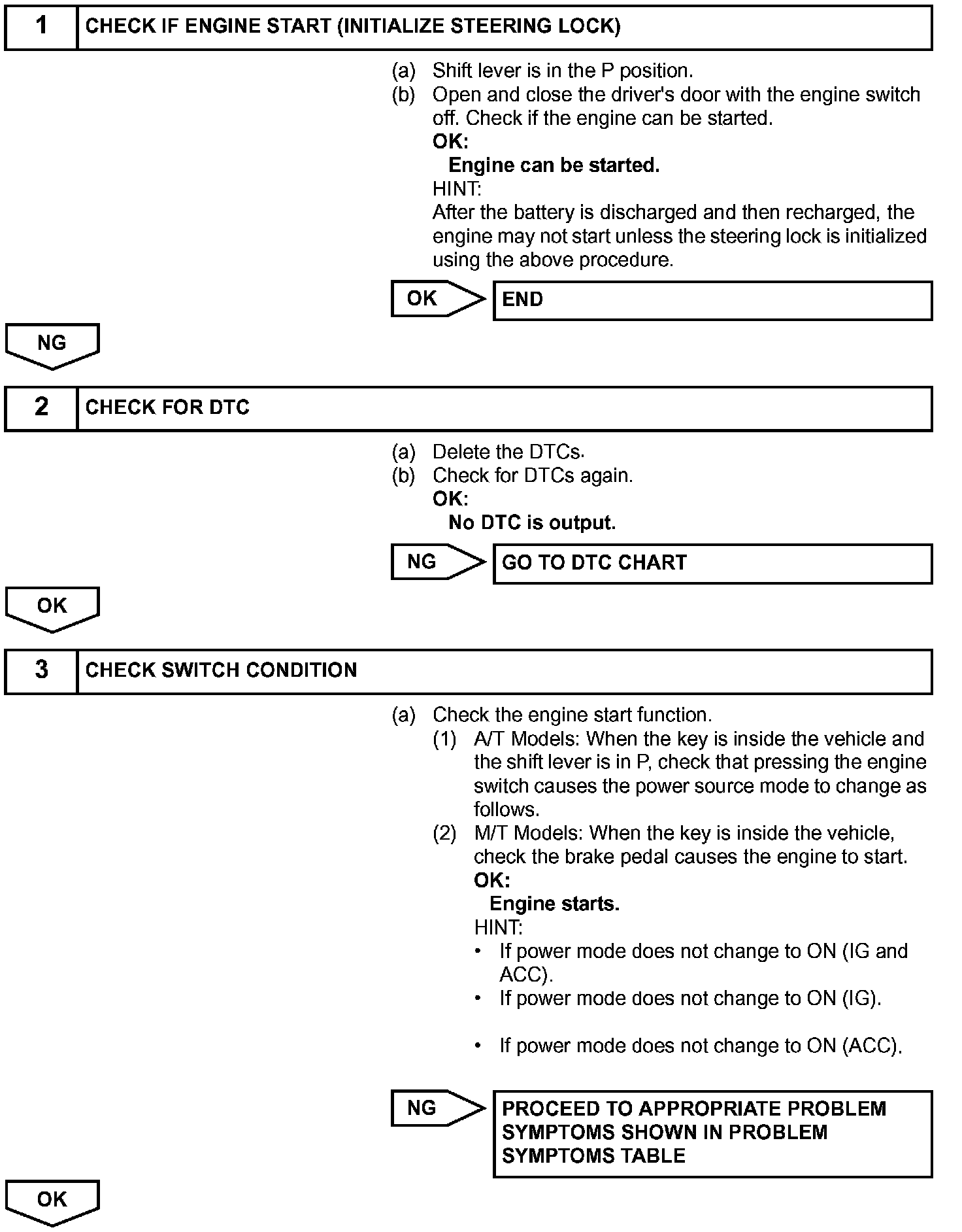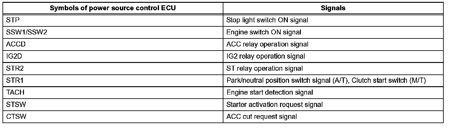 b. M/T Models: If the engine switch is pressed with the clutch pedal depressed, the power source control ECU determines that it is an engine start request.