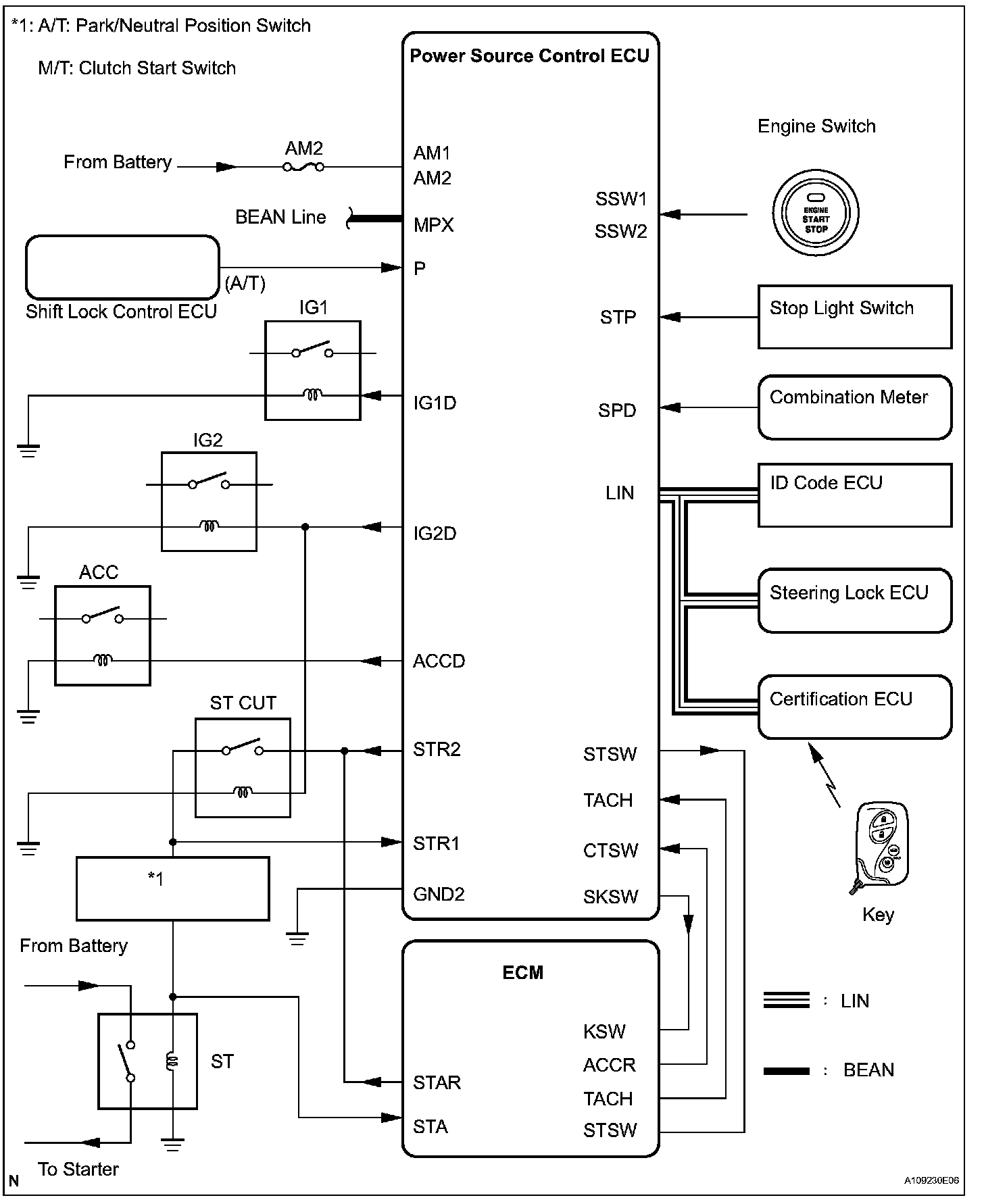 a. A/T Models: If the engine switch is pressed with the shift lever in P or N and the brake pedal depressed, the power source control ECU determines that it is an engine start request.