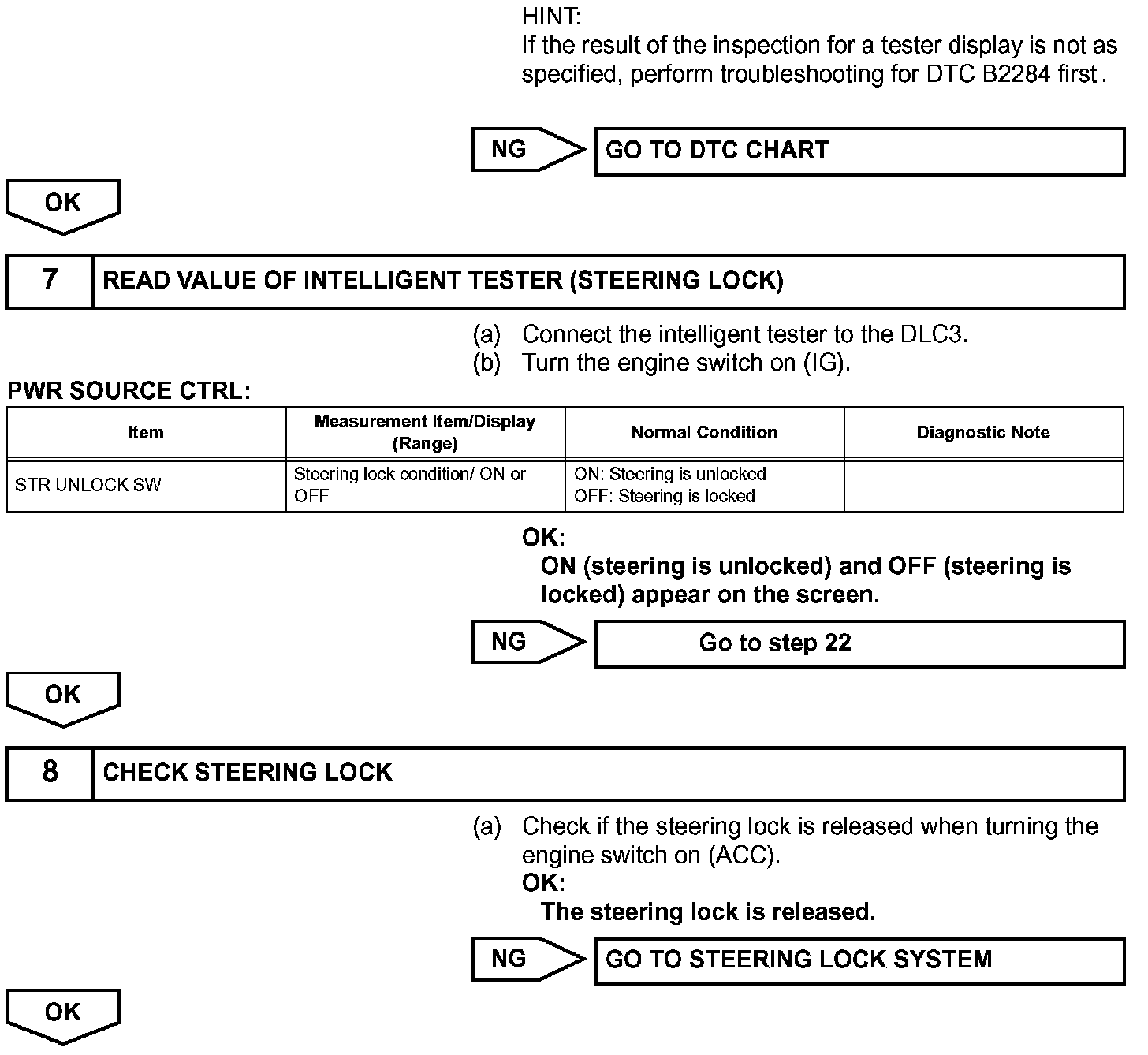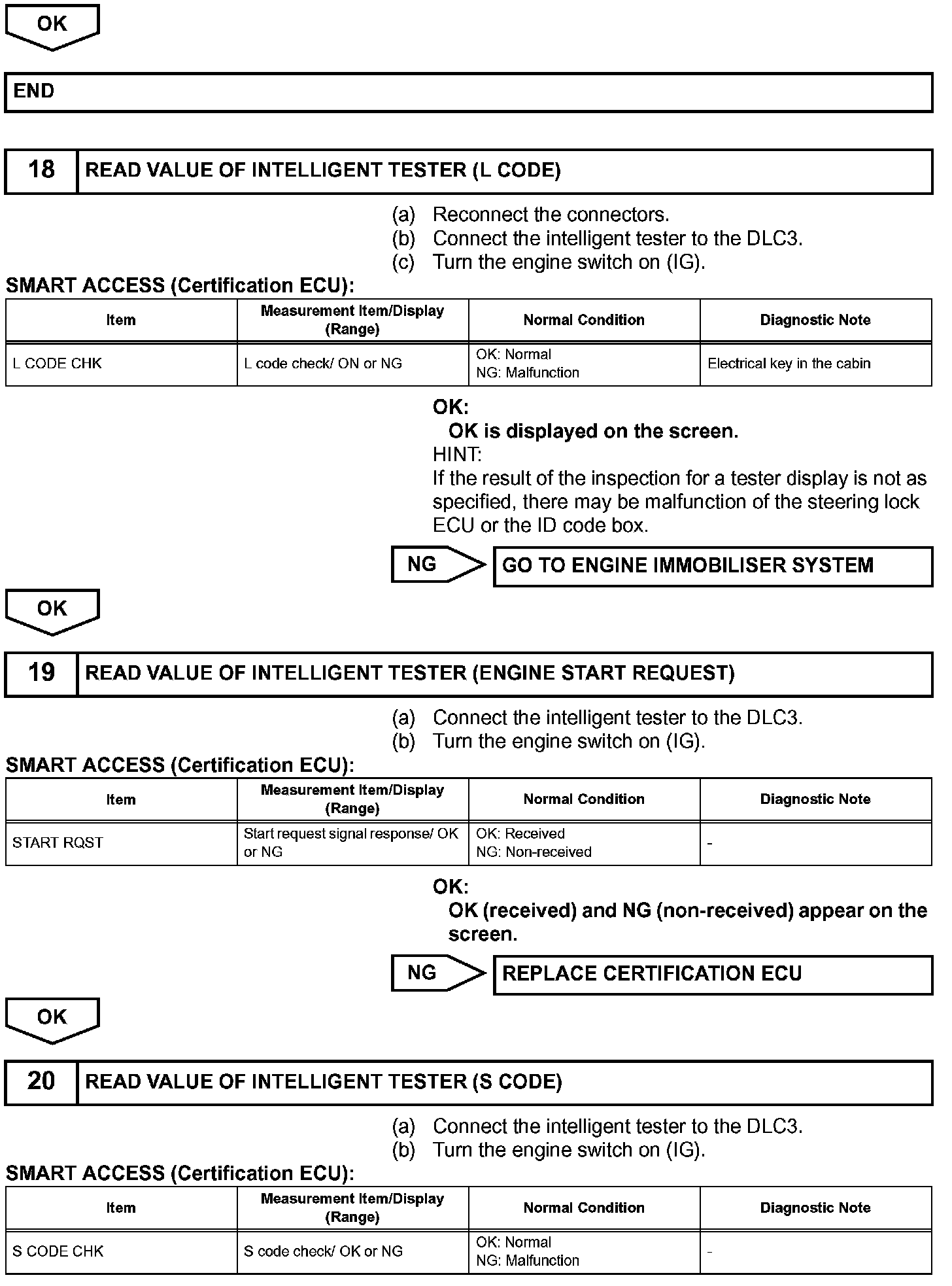 f. The certification ECU outputs a steering UNLOCK signal. The signal is sent to the steering lock ECU via the power source control ECU.