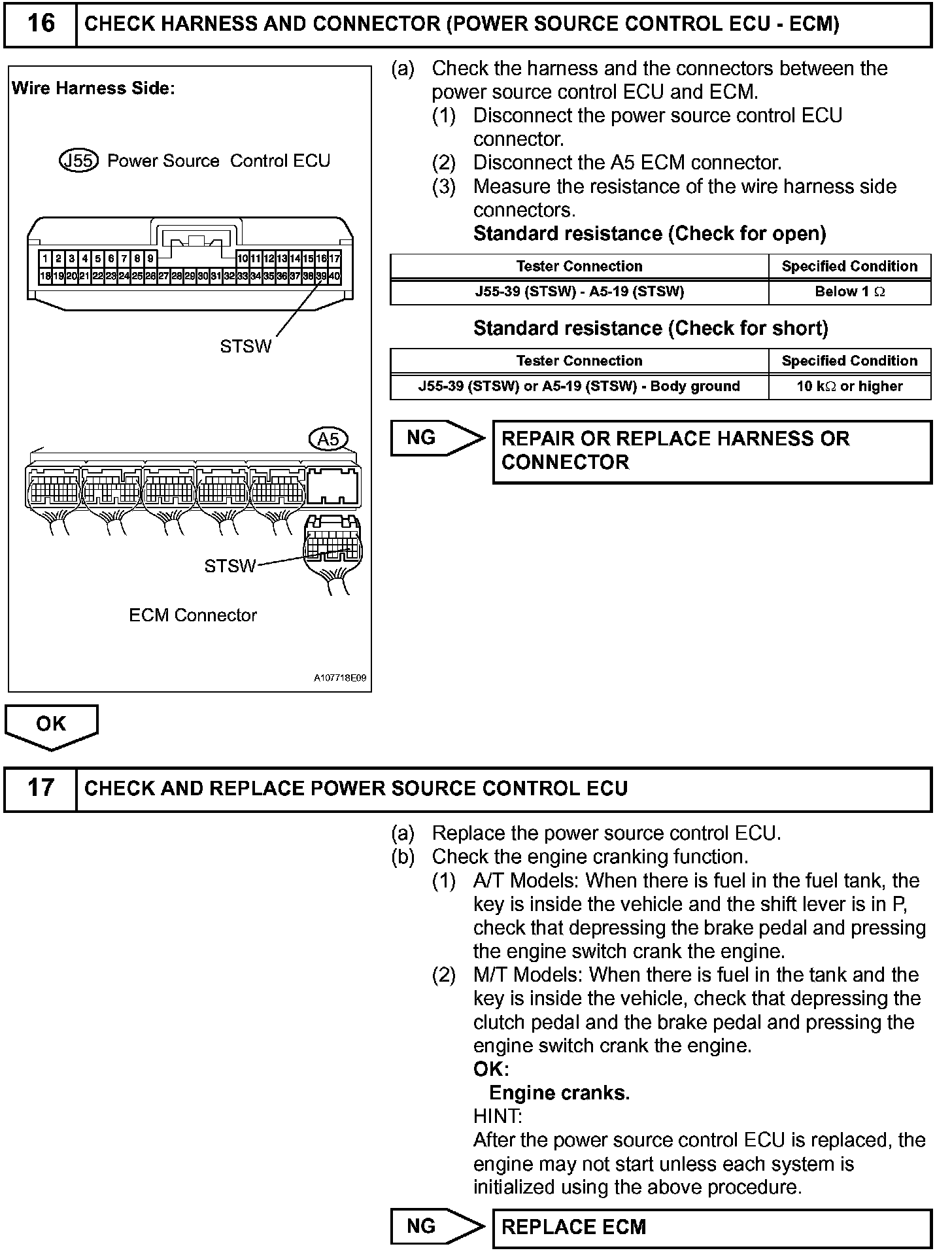 g. The power source control ECU sends an engine start request signal to the ECM.