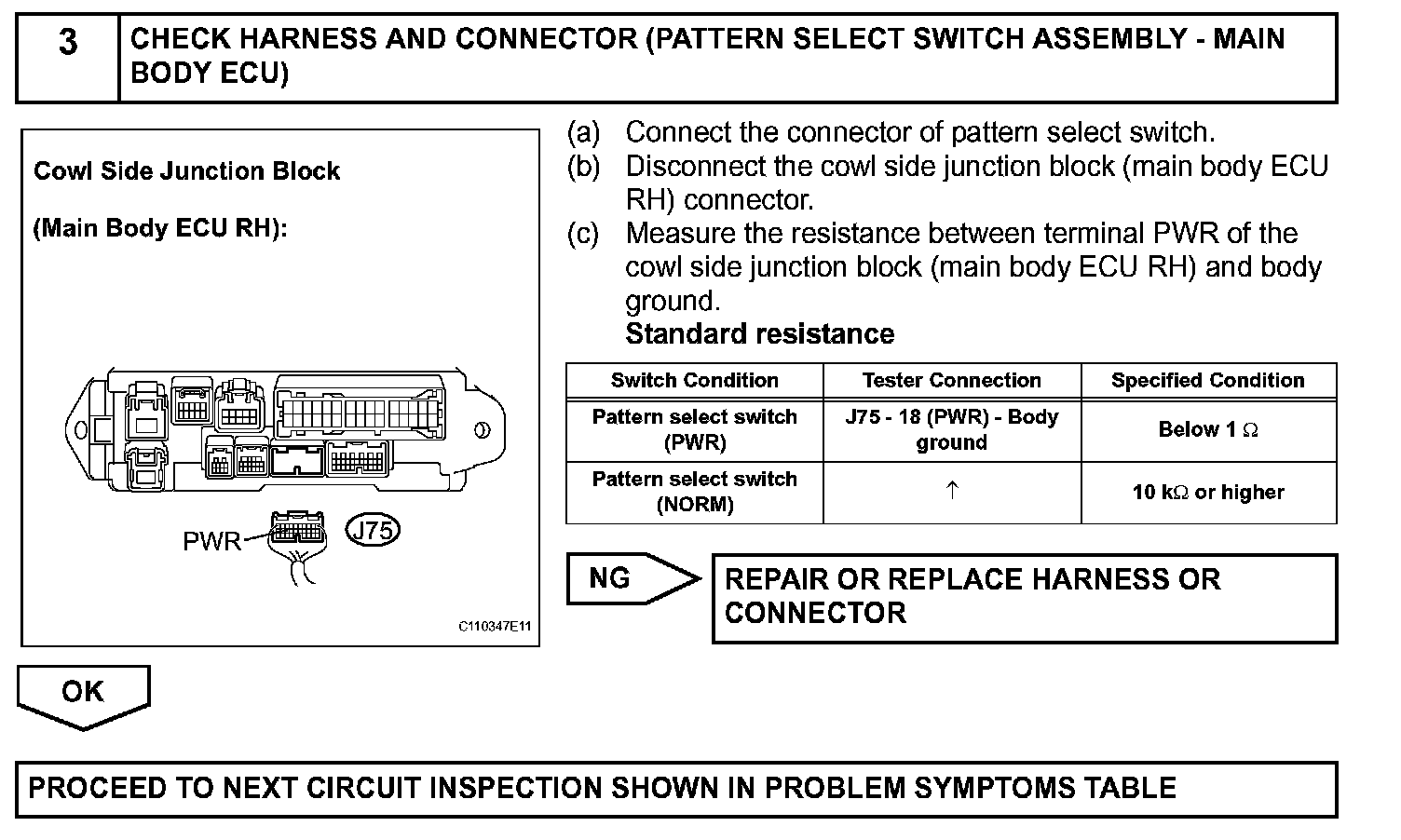 Cowl side J/B ECU receives pattern select switch information, and sends it through the multiplex communication system and CAN system to the ECM.