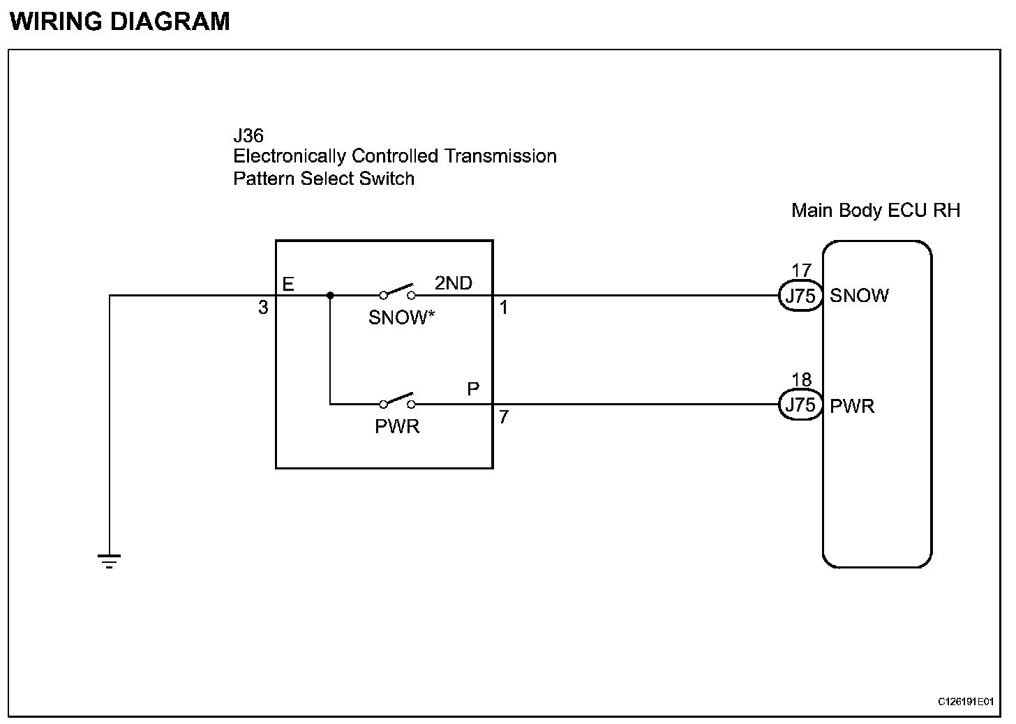 When the ECT SNOW switch is pushed, the switch contact is made and the ECT SNOW mode is selected.