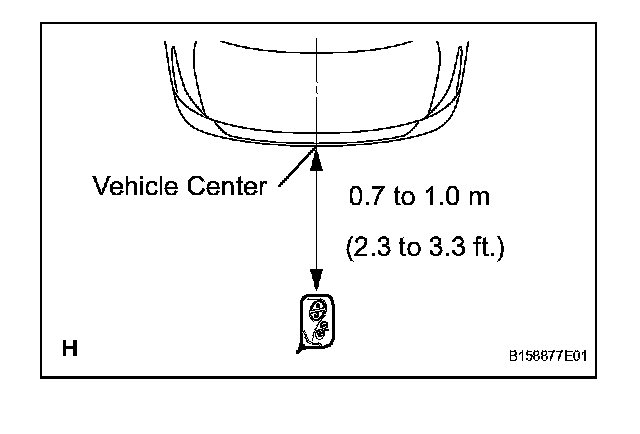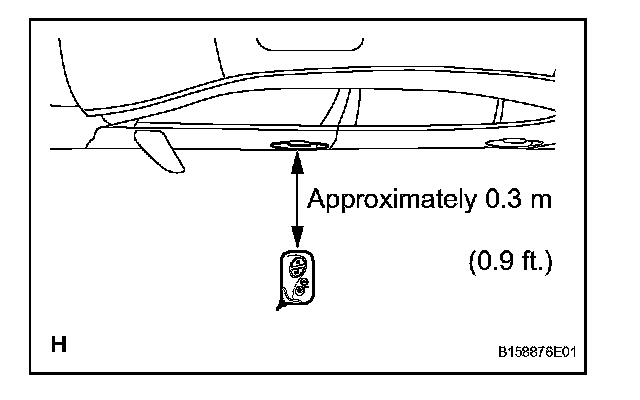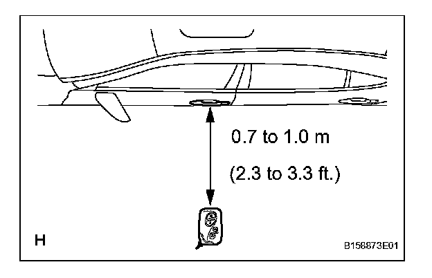 2. Step 2: Check that when the key is brought within 0.7 to 1.0 m (2.3 to 3.3 ft.) of the vehicle, the system enters unlock standby mode.