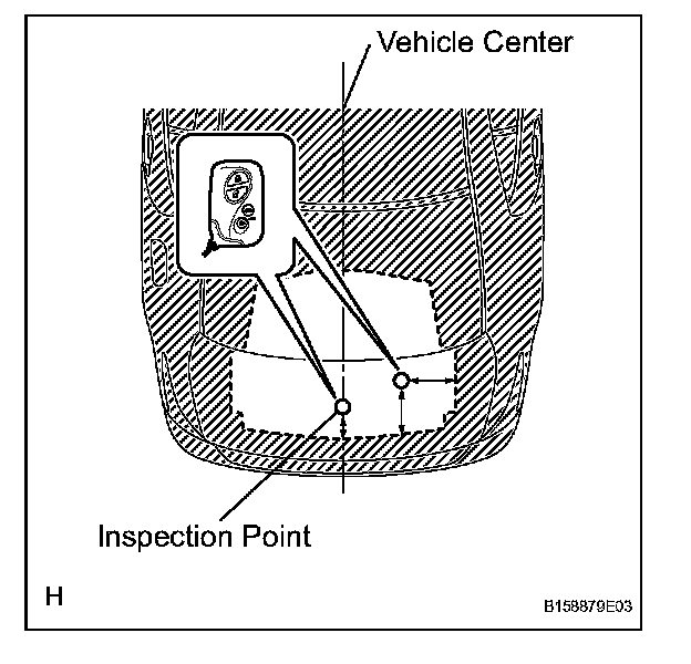 3. Inspect the entry ignition operation's detection area (front seat). Pay attention to the direction of the key in the illustration. When the key is in either of the 2 locations in the illustration, check that the engine can start.
