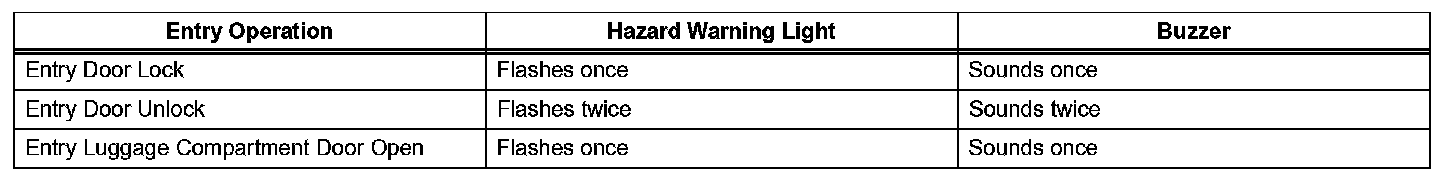 h. Check the answer-back function (hazard warning light flashing and buzzer sounding).