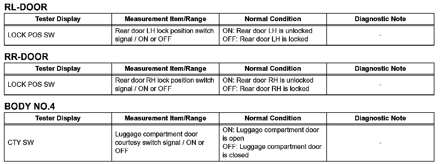 DATA LISTHINT: Using the intelligent tester or Techstream to read the DATA LIST allows values or status of switches, sensors, actuators and other items to be read without removing any parts. This non-intrusive inspection can be very useful because intermittent conditions or signals may be discovered before parts or wiring is disturbed. Reading the DATA LIST information early in troubleshooting is one way to save diagnostic time.