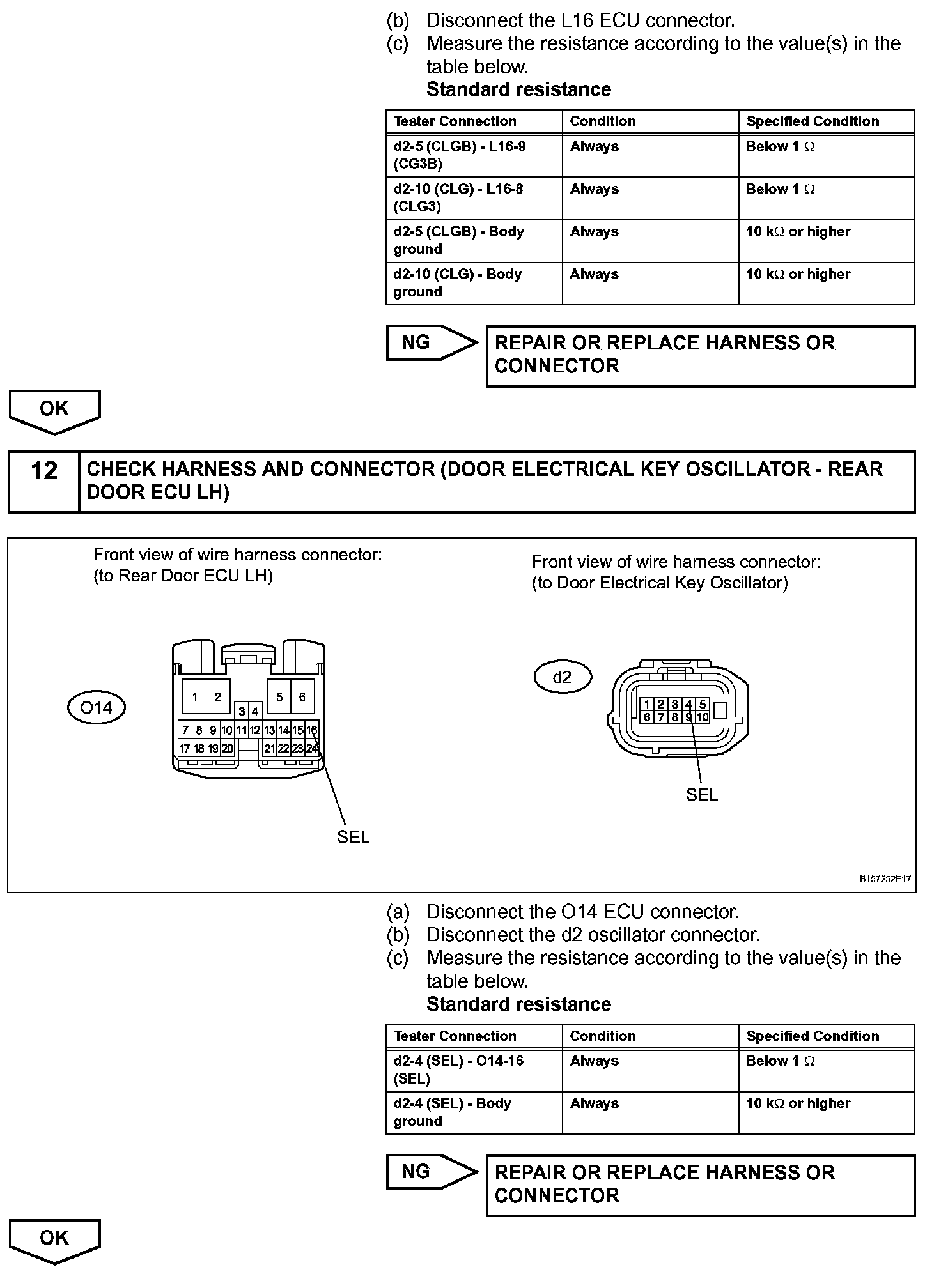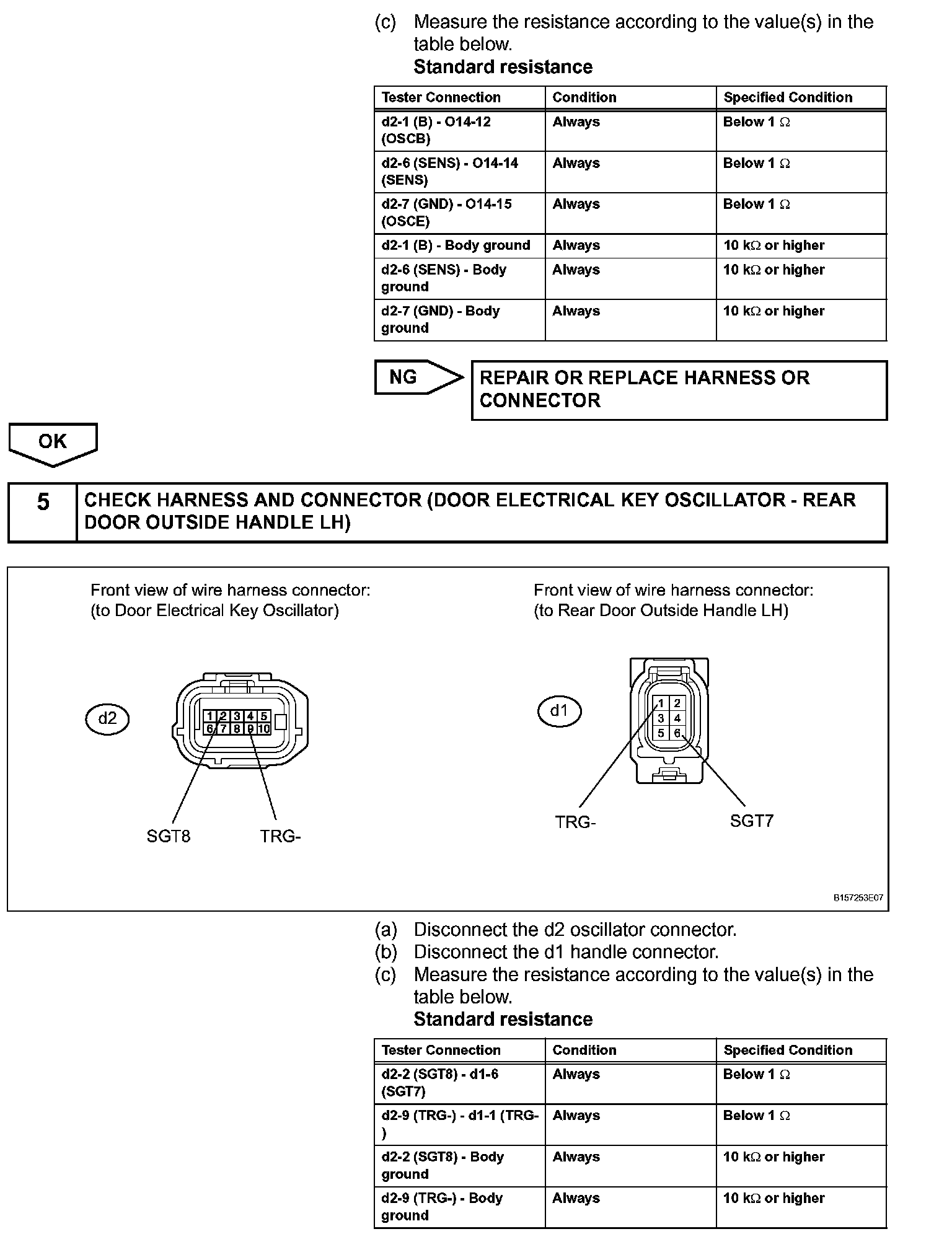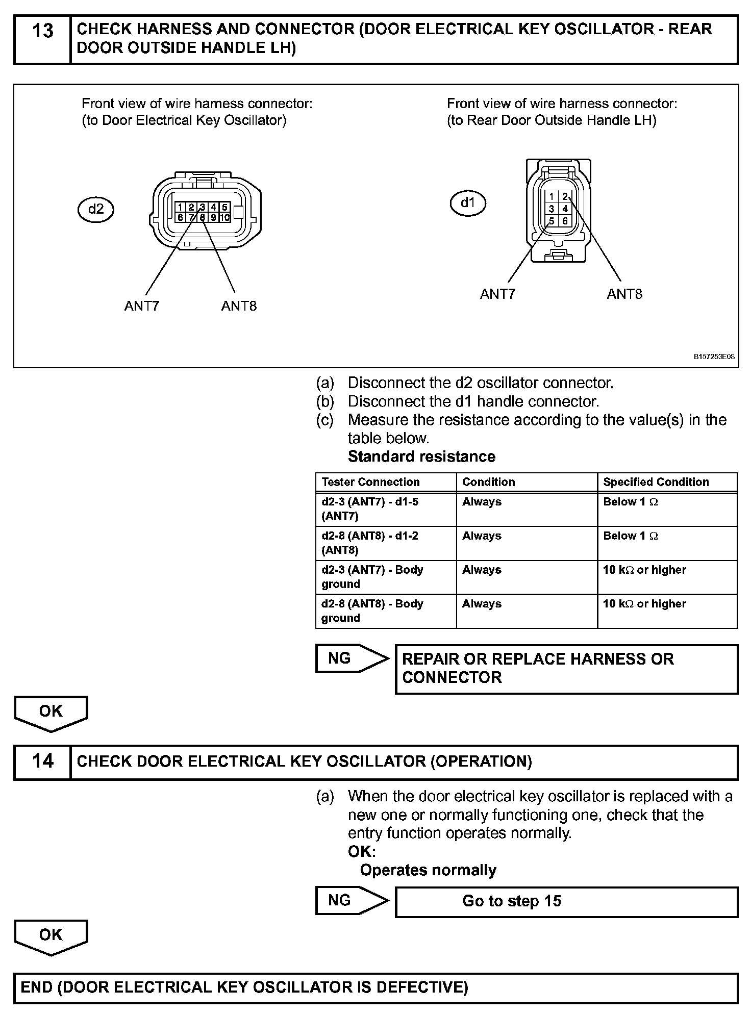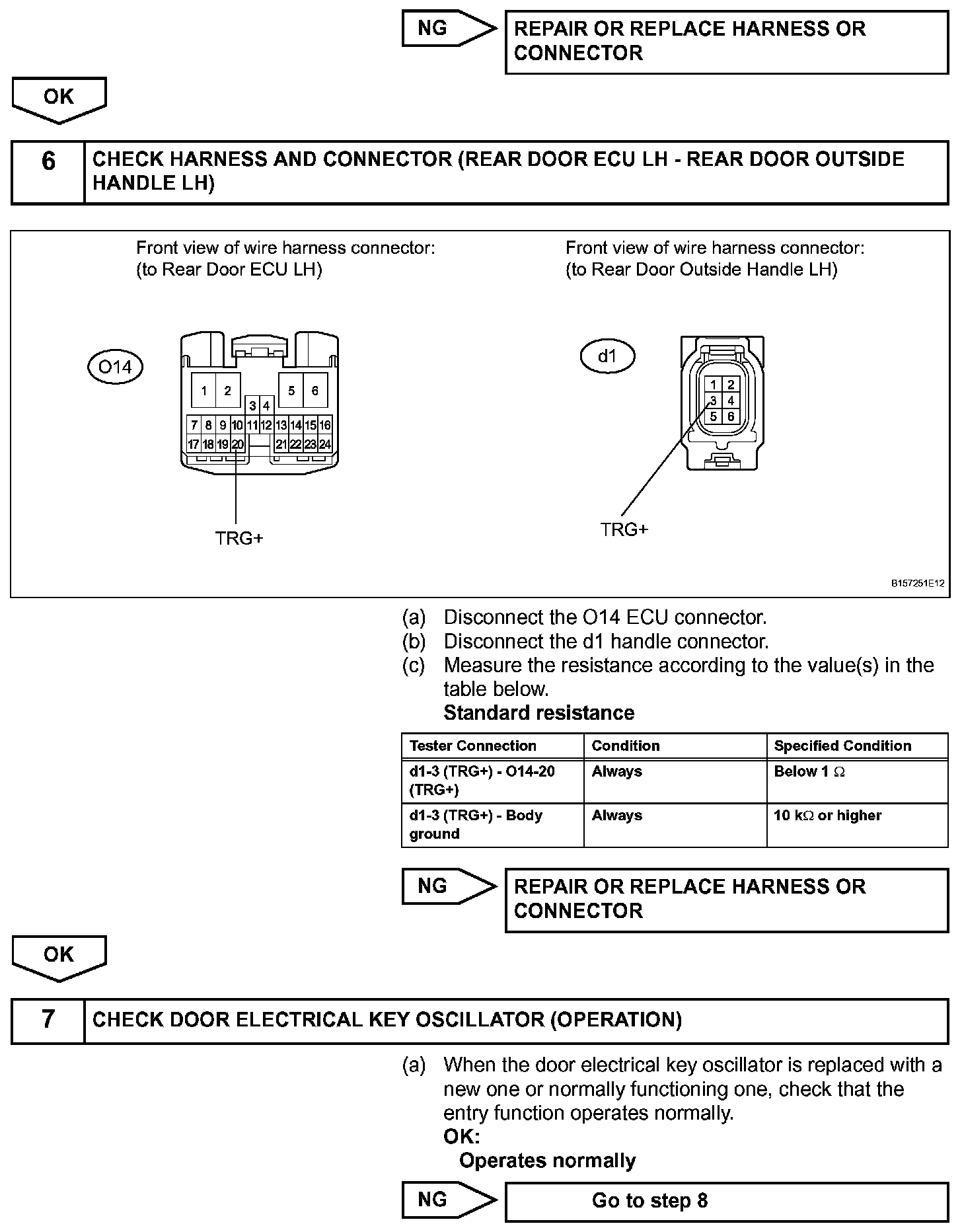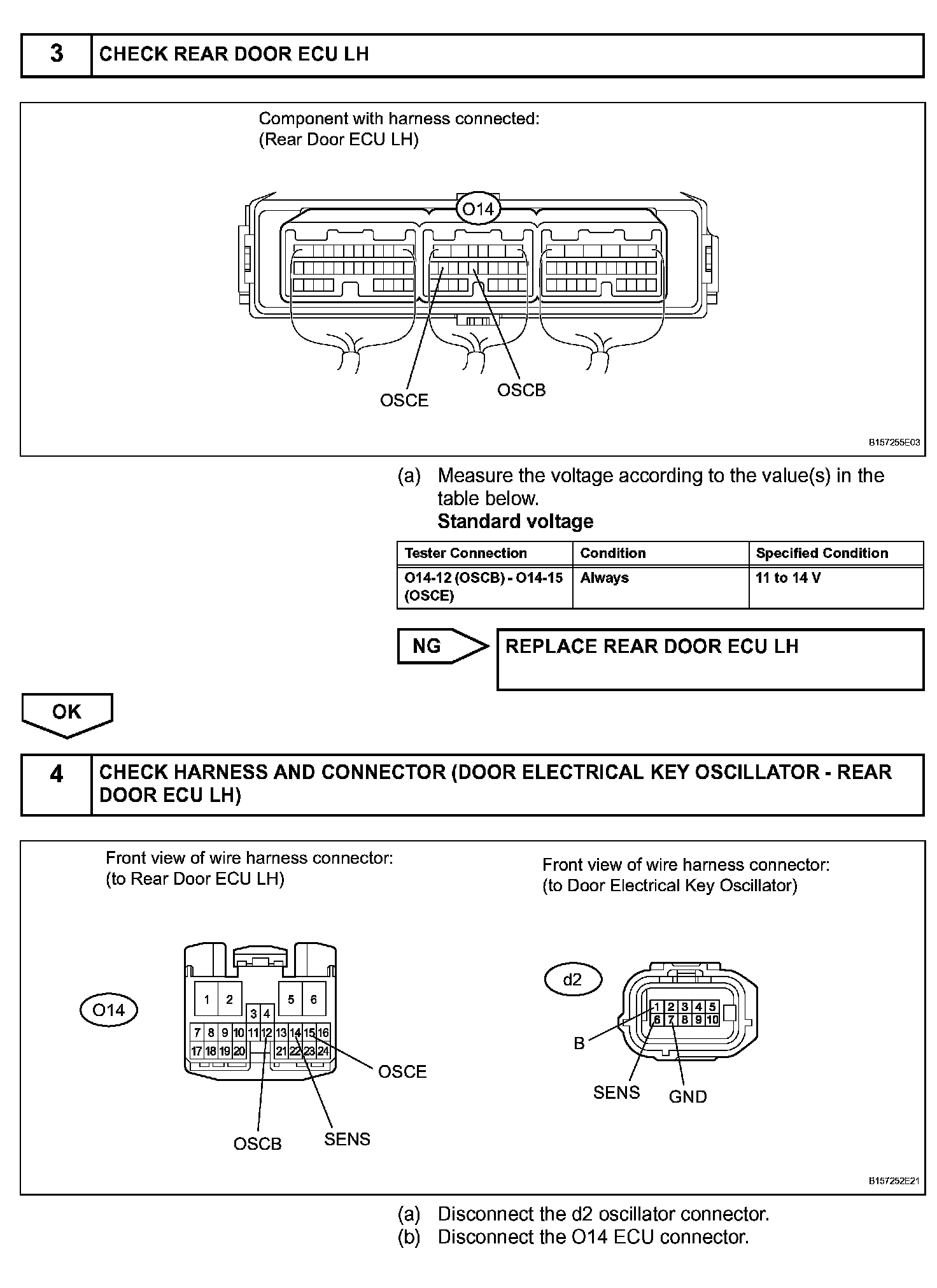When the rear door LH entry lock and unlock functions do not operate, one of the following may be malfunctioning: 1) power door lock system, 2) rear door LH electrical key oscillator, or 3) certification ECU.