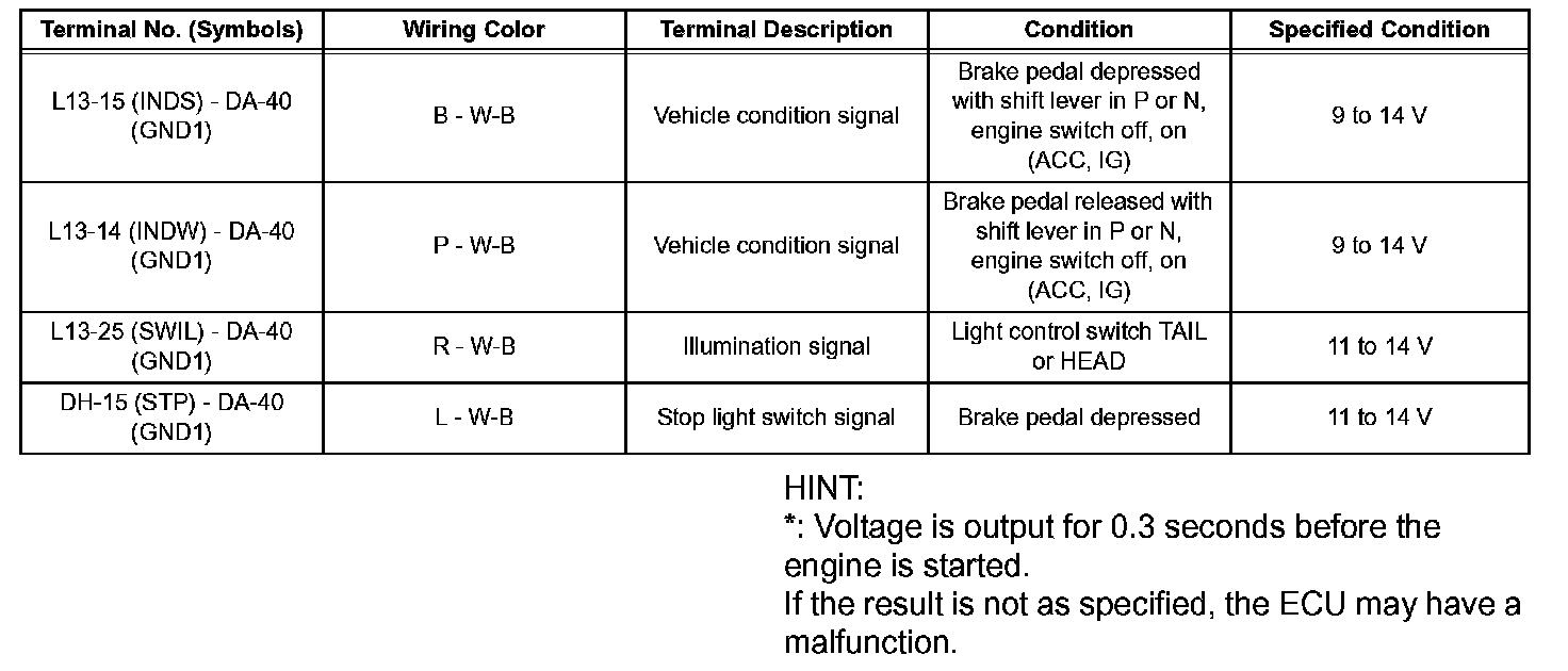 Terminals Of Control Module/Pinouts-Check Steering Lock ECU (Part 2):
