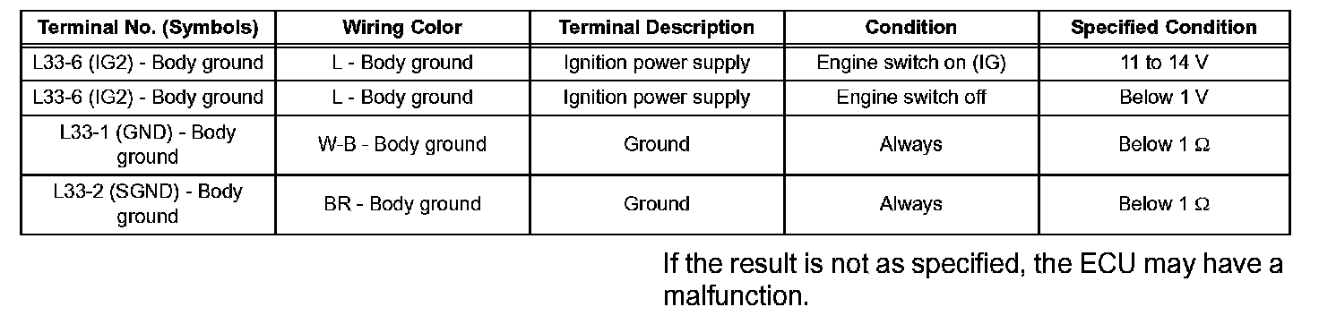 Terminals Of Control Module/Pinouts-Check Main Body ECU (Part 2):