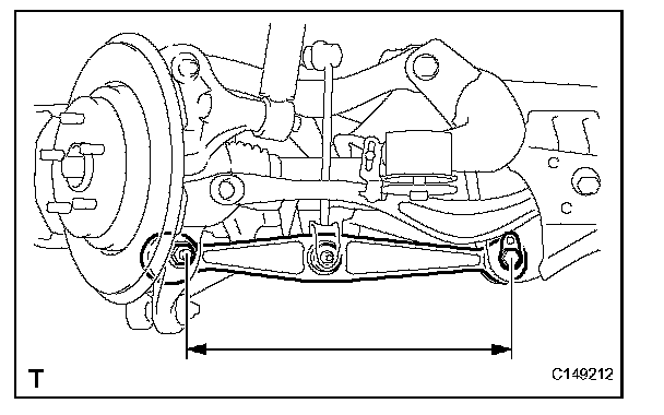 (1) Measure the distance between the centers of the installation bolt of the rear upper No. 2 control arm and the ball joint stud.