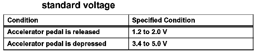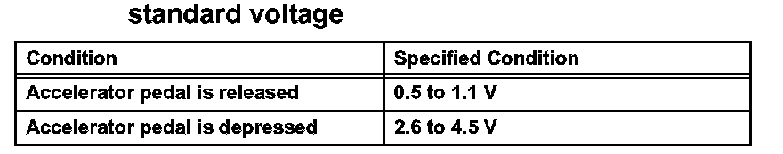 If the result is not as specified, check the accelerator pedal, wire harness or ECM.