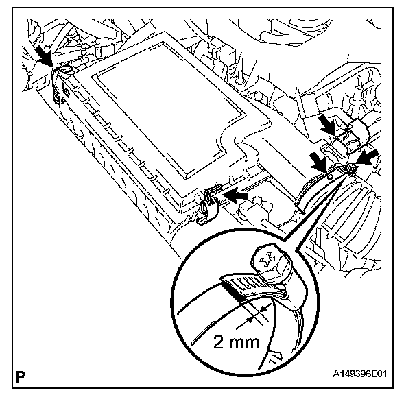 - When tightening the hose clamp, make sure the hose clamp's end is within the painted white line (width: 2 mm or 0.079 in.).