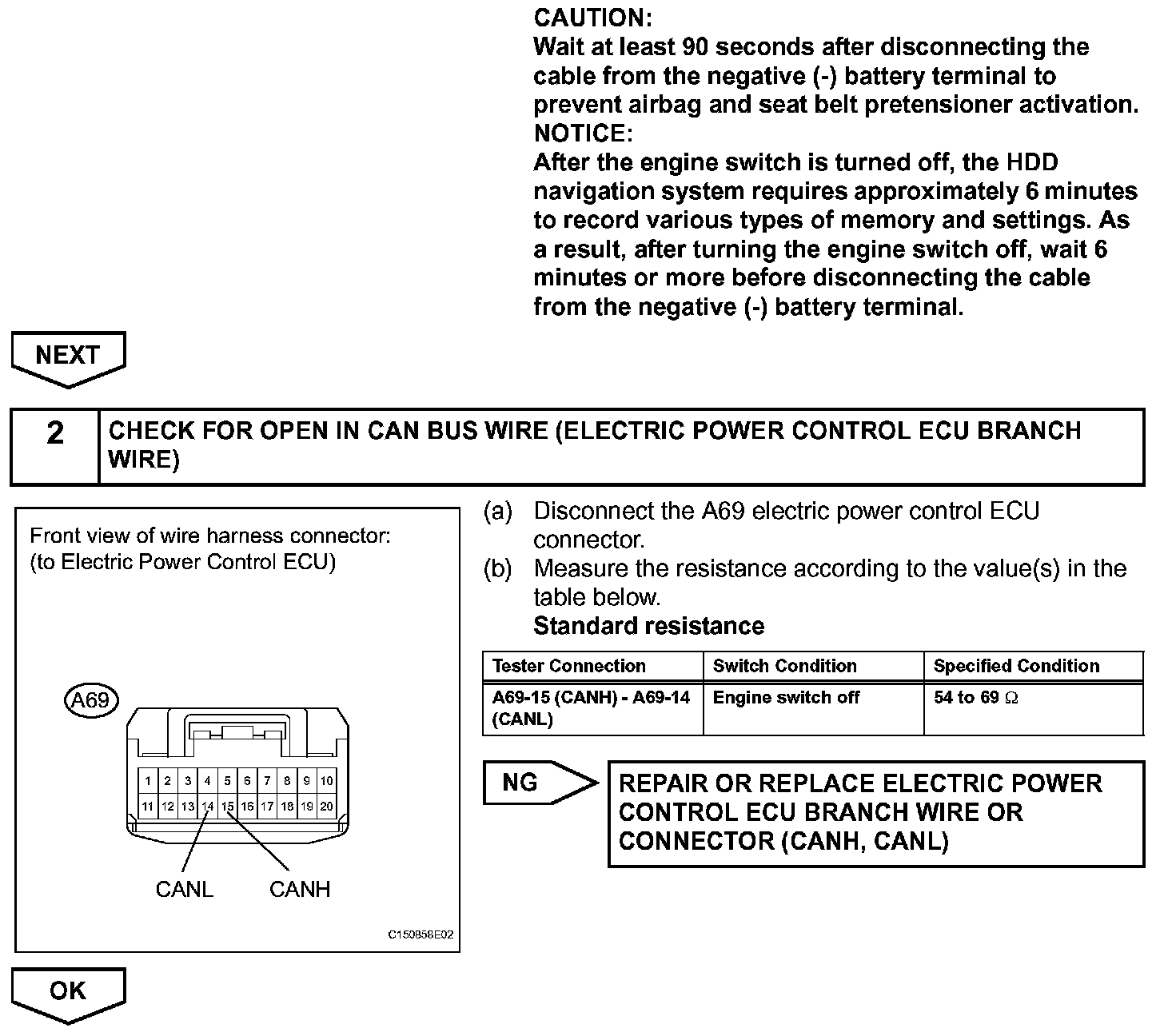 HINT: Operating the engine switch, any switches or any doors triggers related ECU and sensor communication with the CAN, which causes resistance variation.