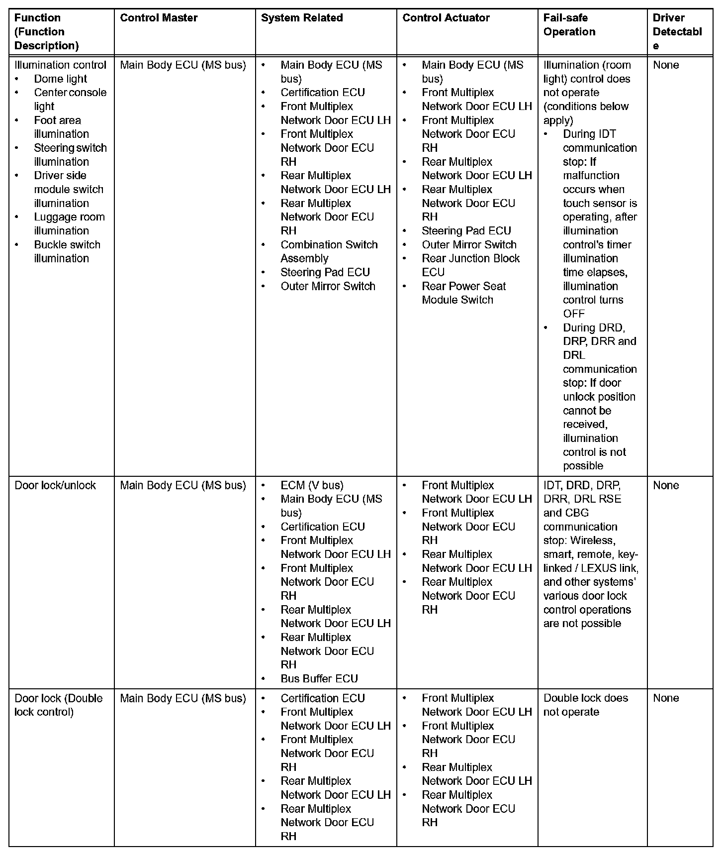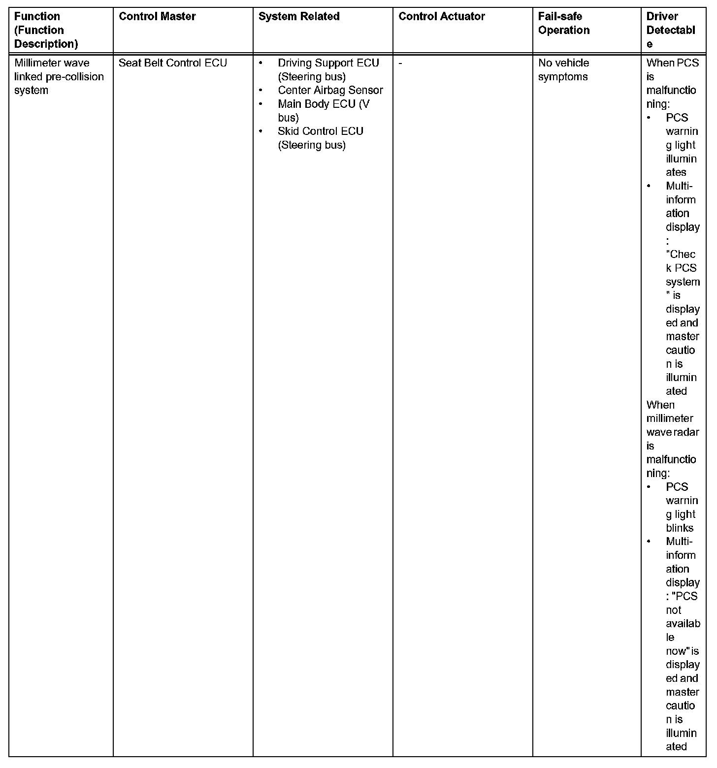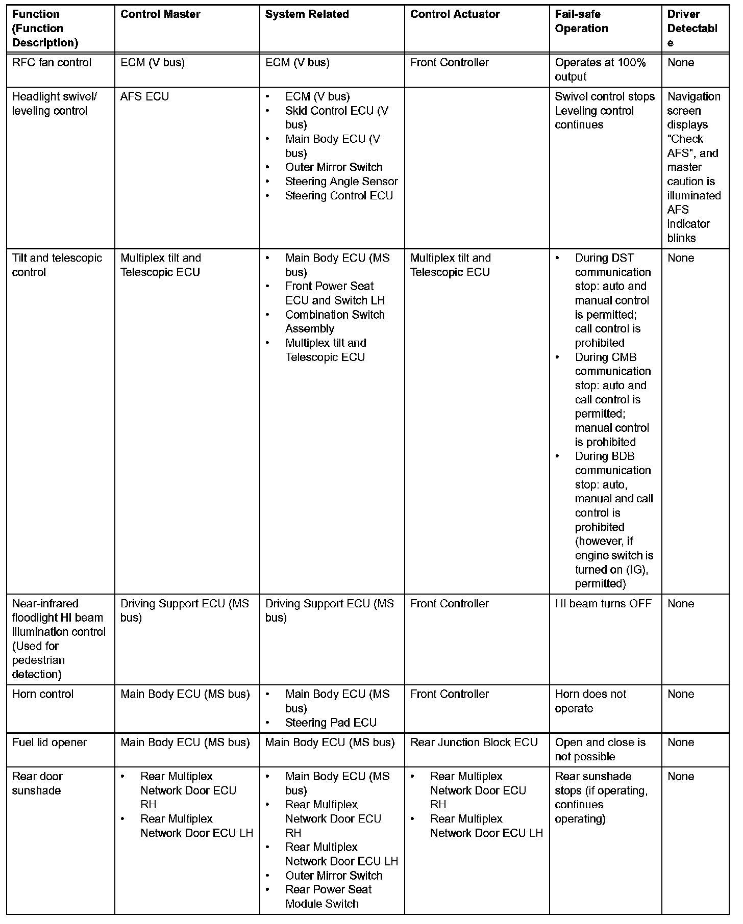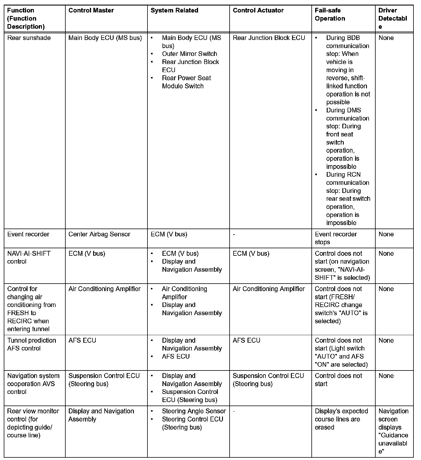 b. The table shows the effects on each system when communication is impossible. For further details, refer to each system.
