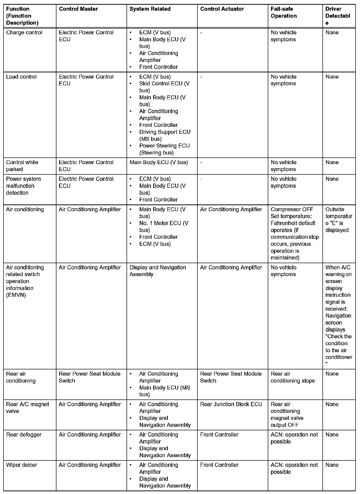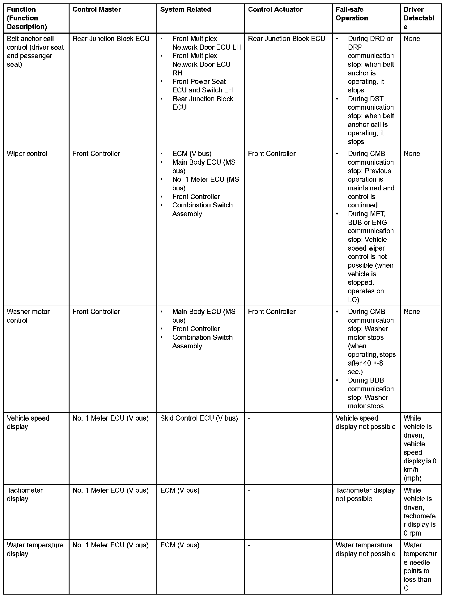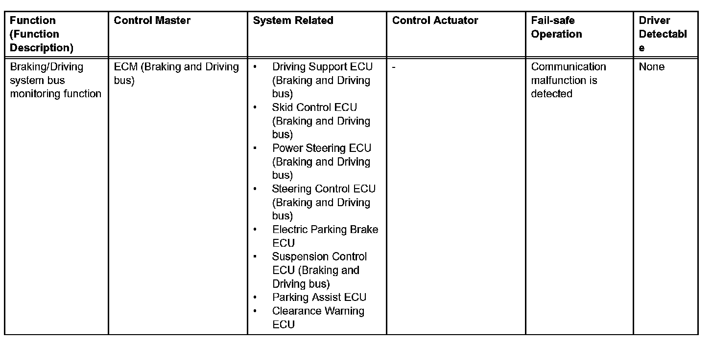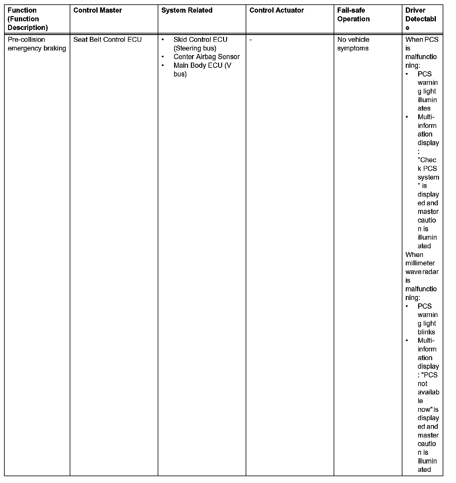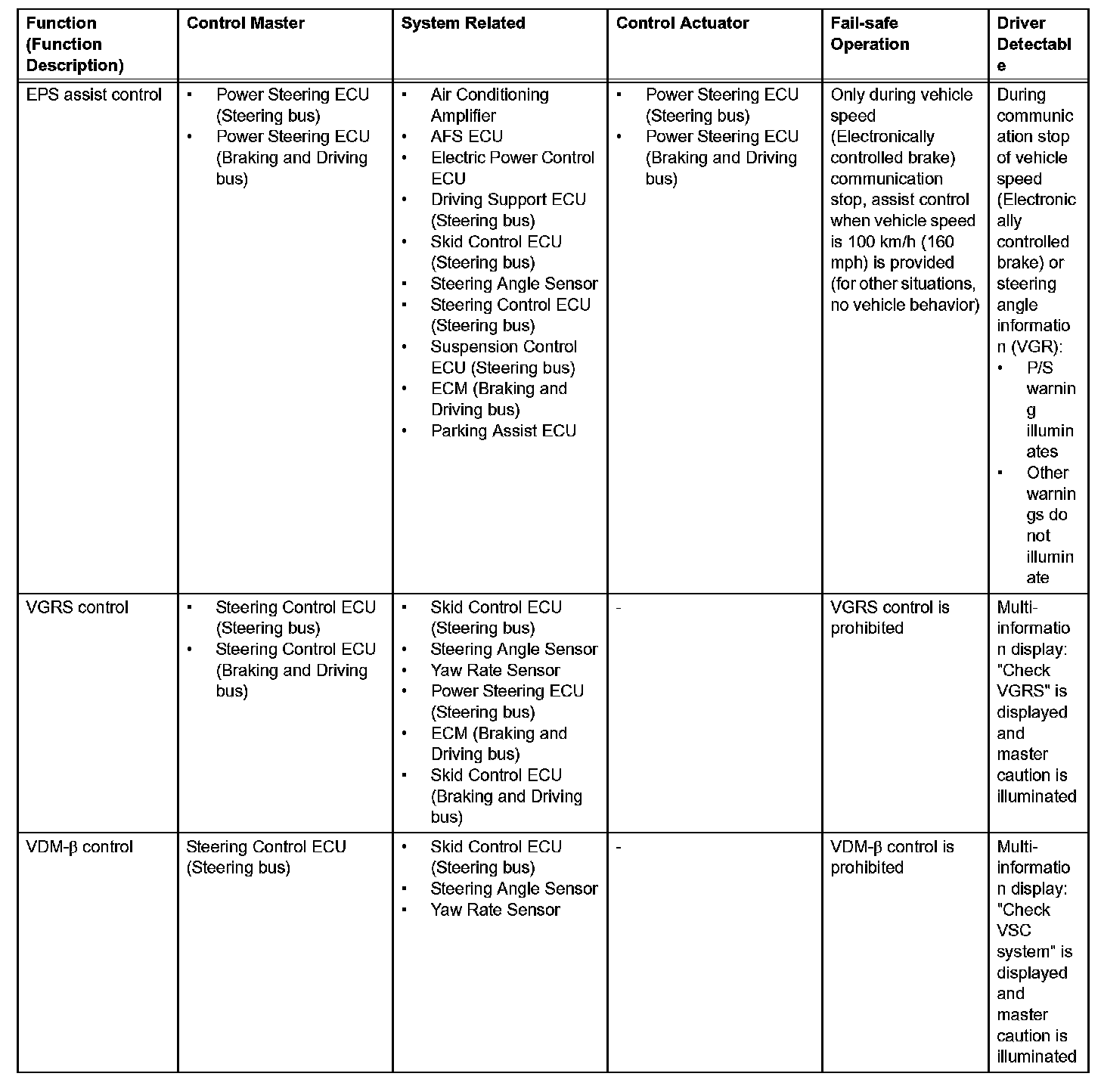b. The table shows the effects on each system when communication is impossible. For further details, refer to each system.
