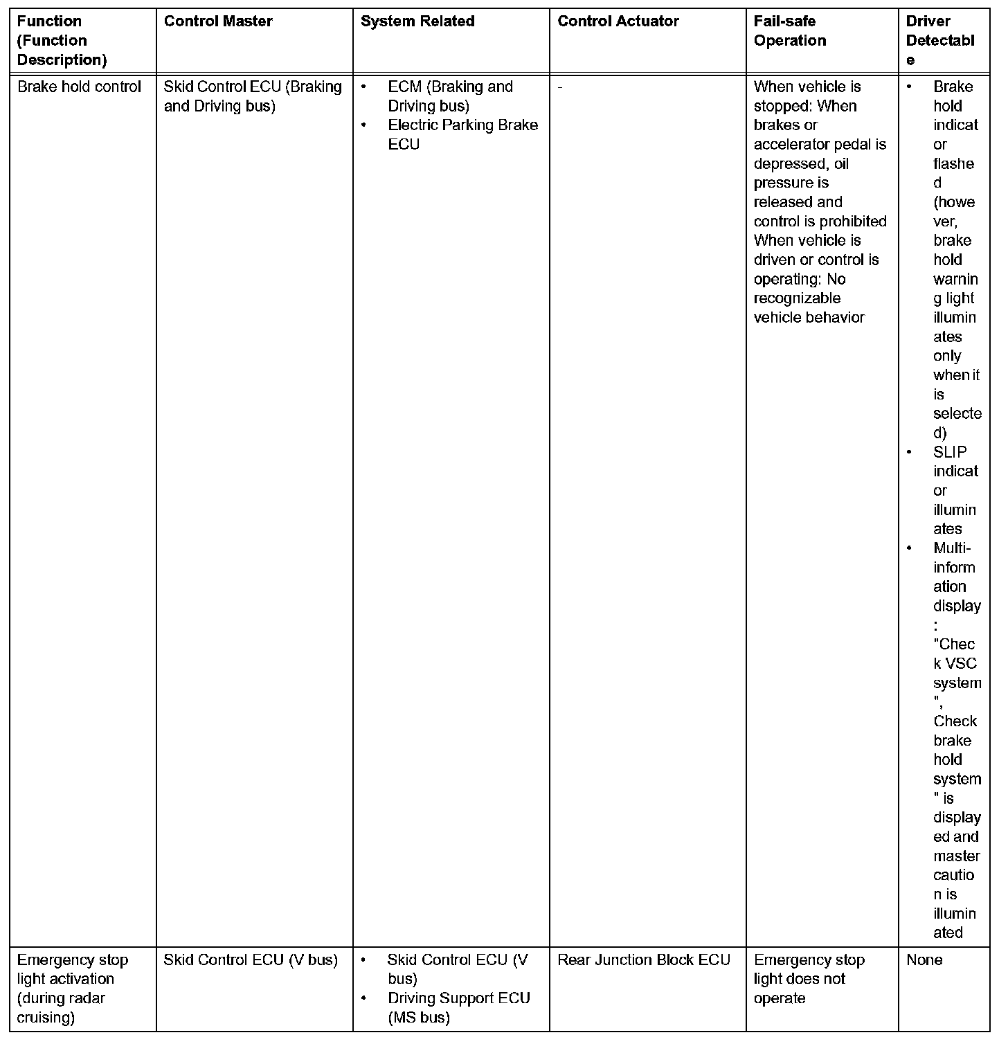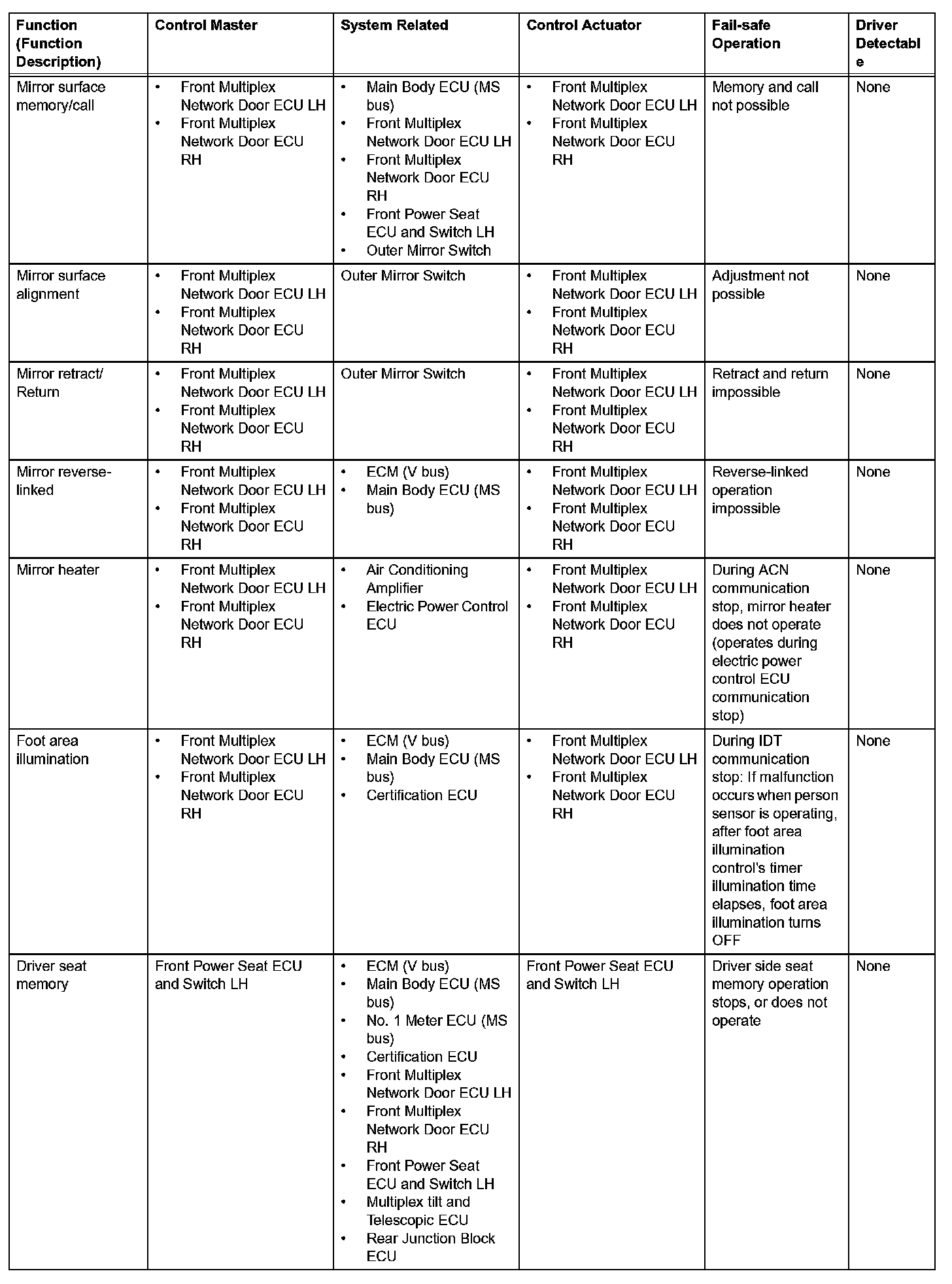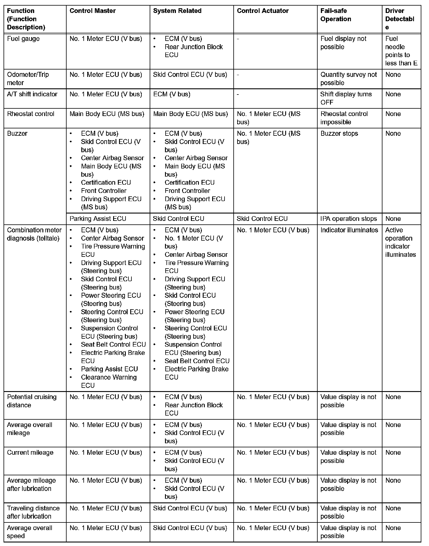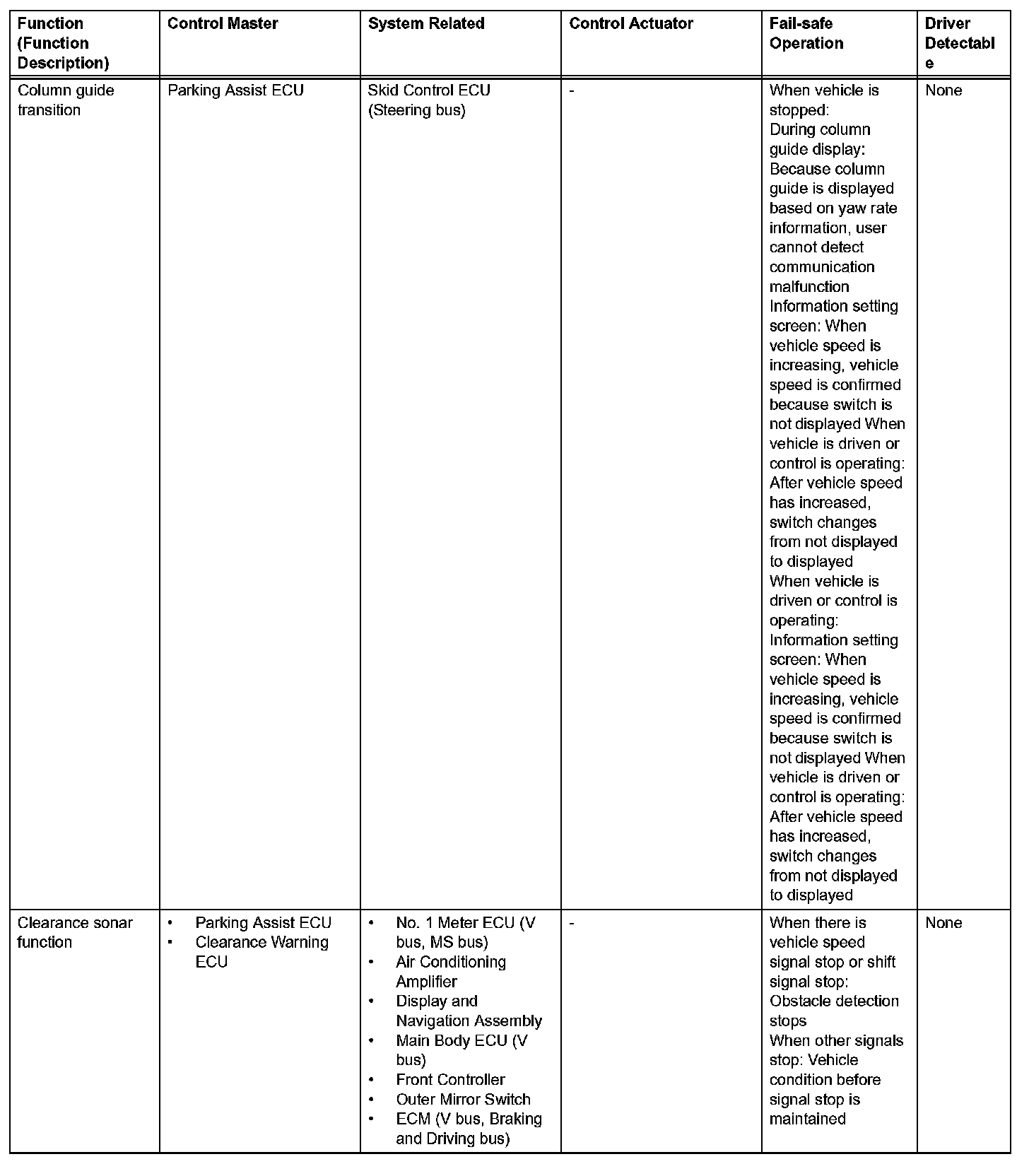 b. The table shows the effects on each system when communication is impossible. For further details, refer to each system.
