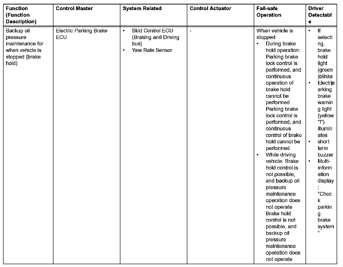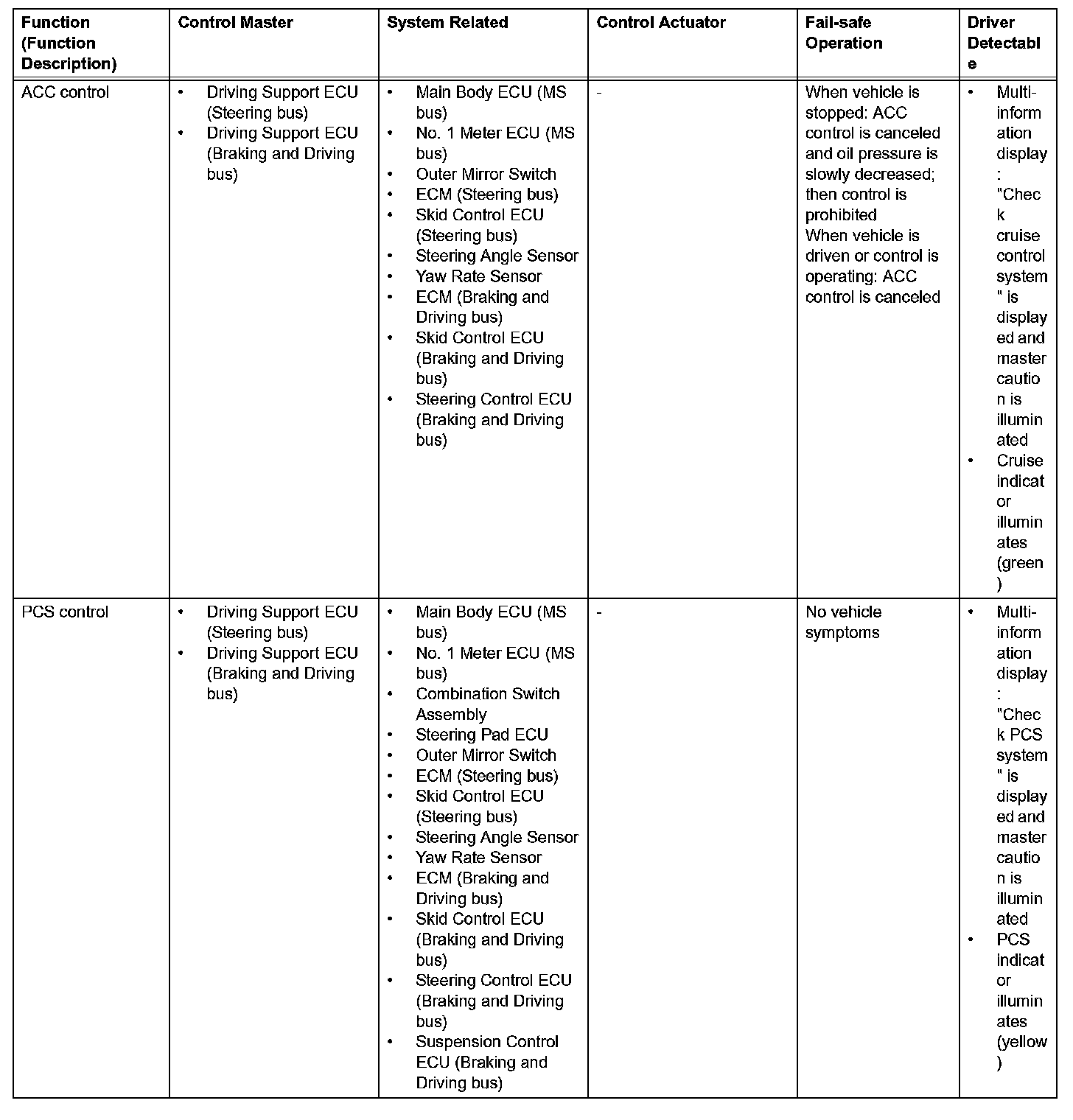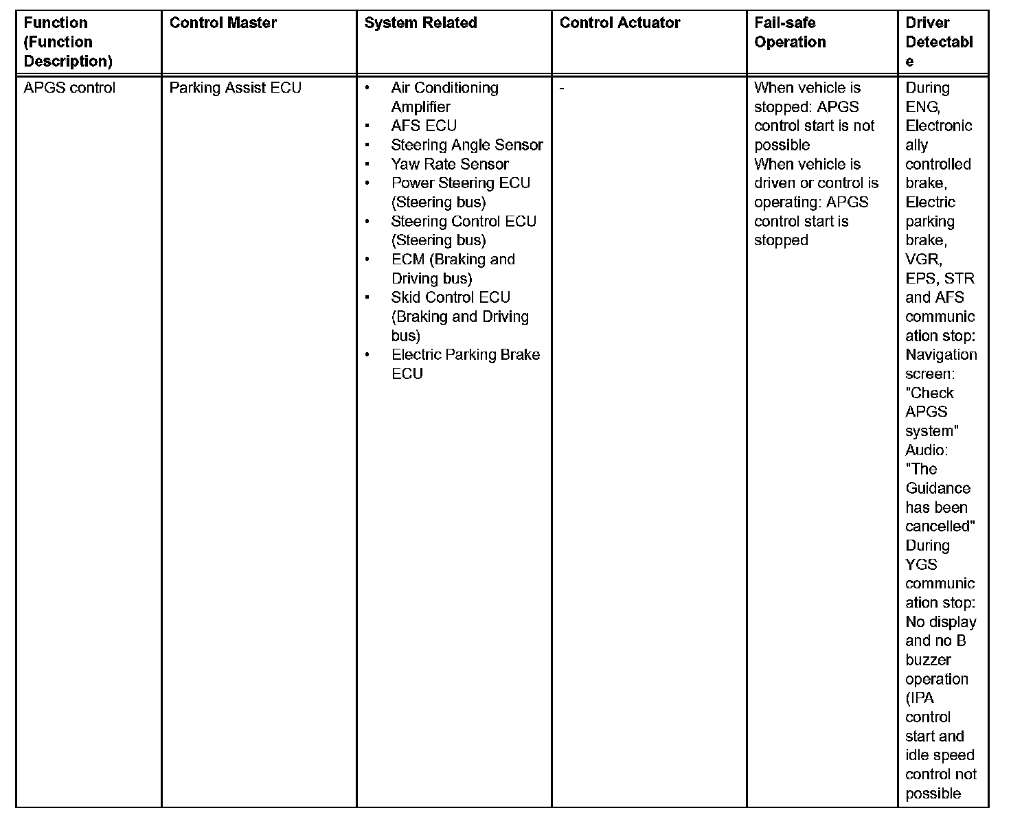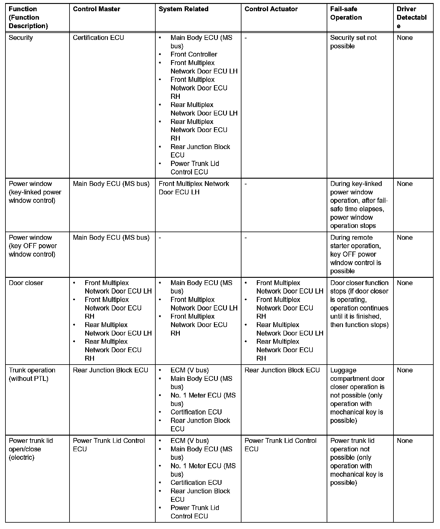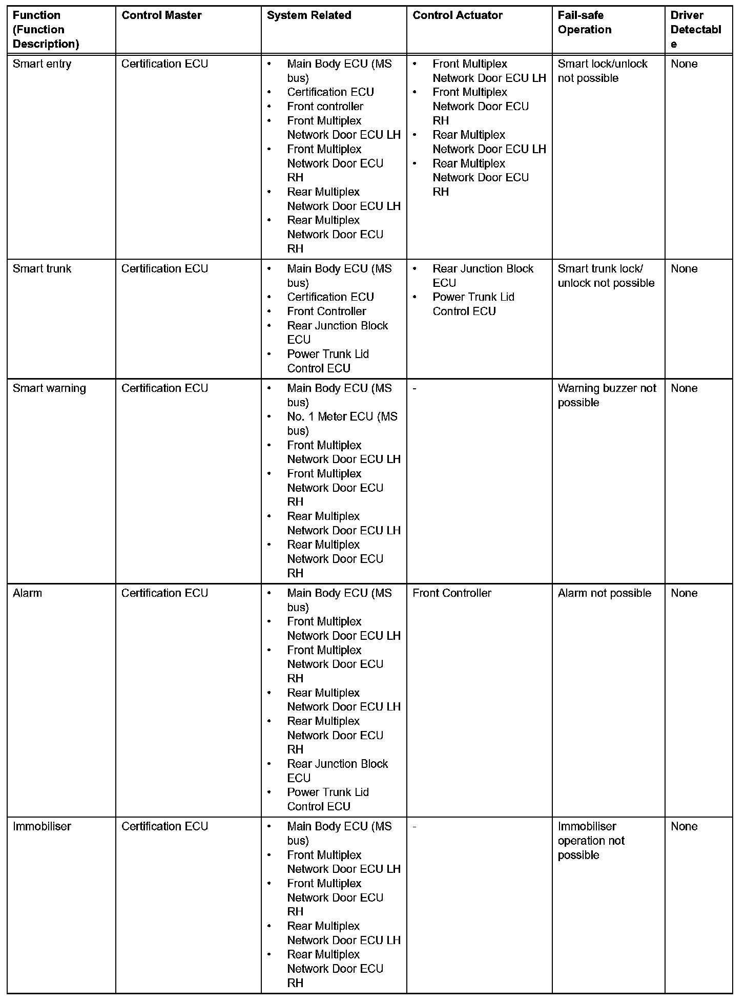 b. The table shows the effects on each system when communication is impossible. For further details, refer to each system.
