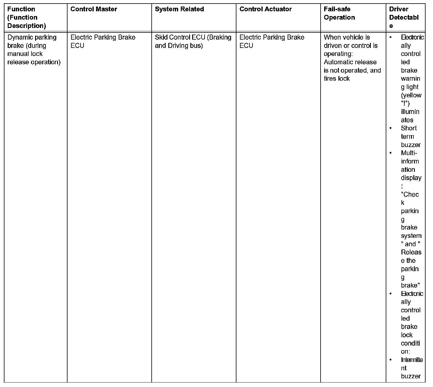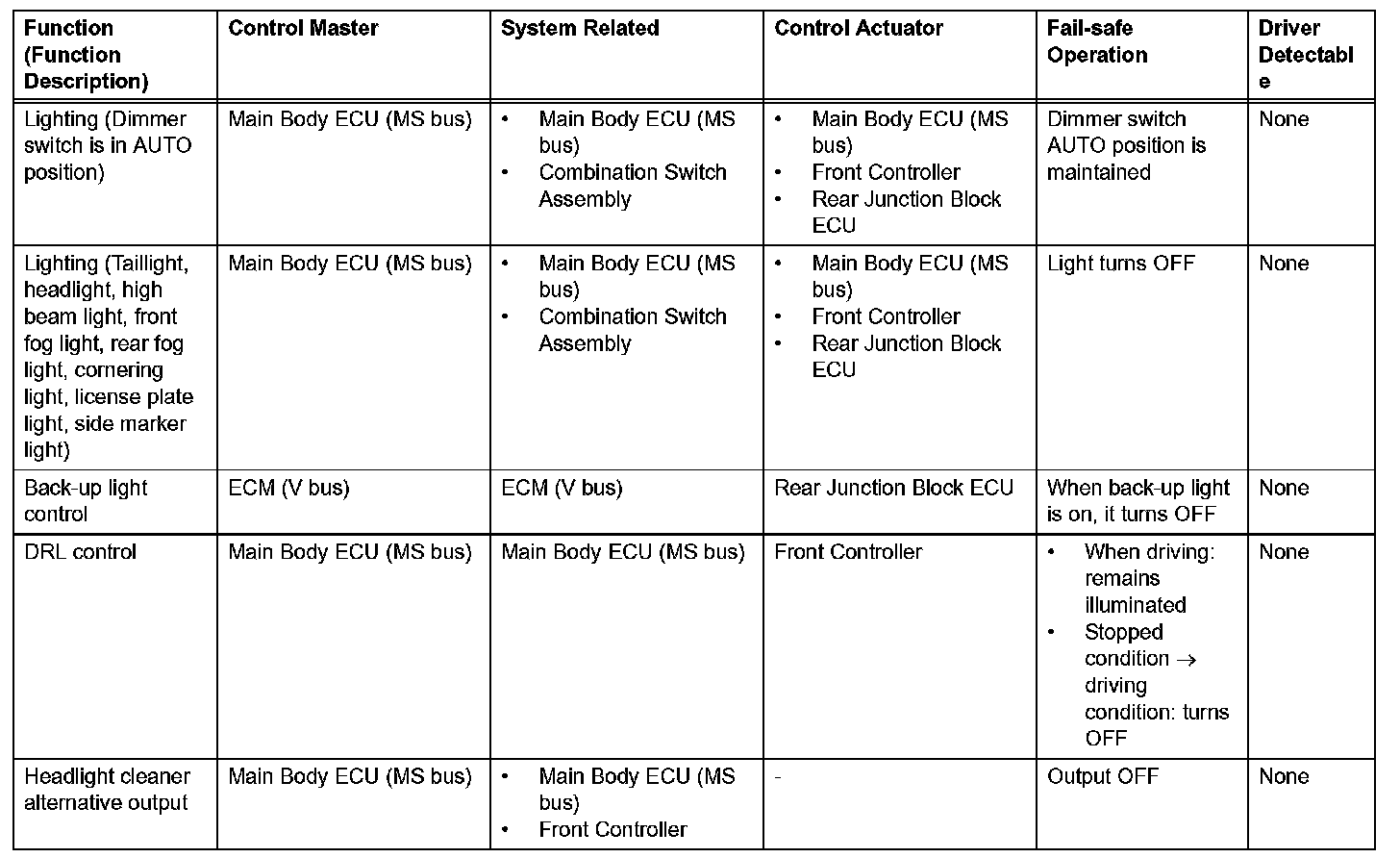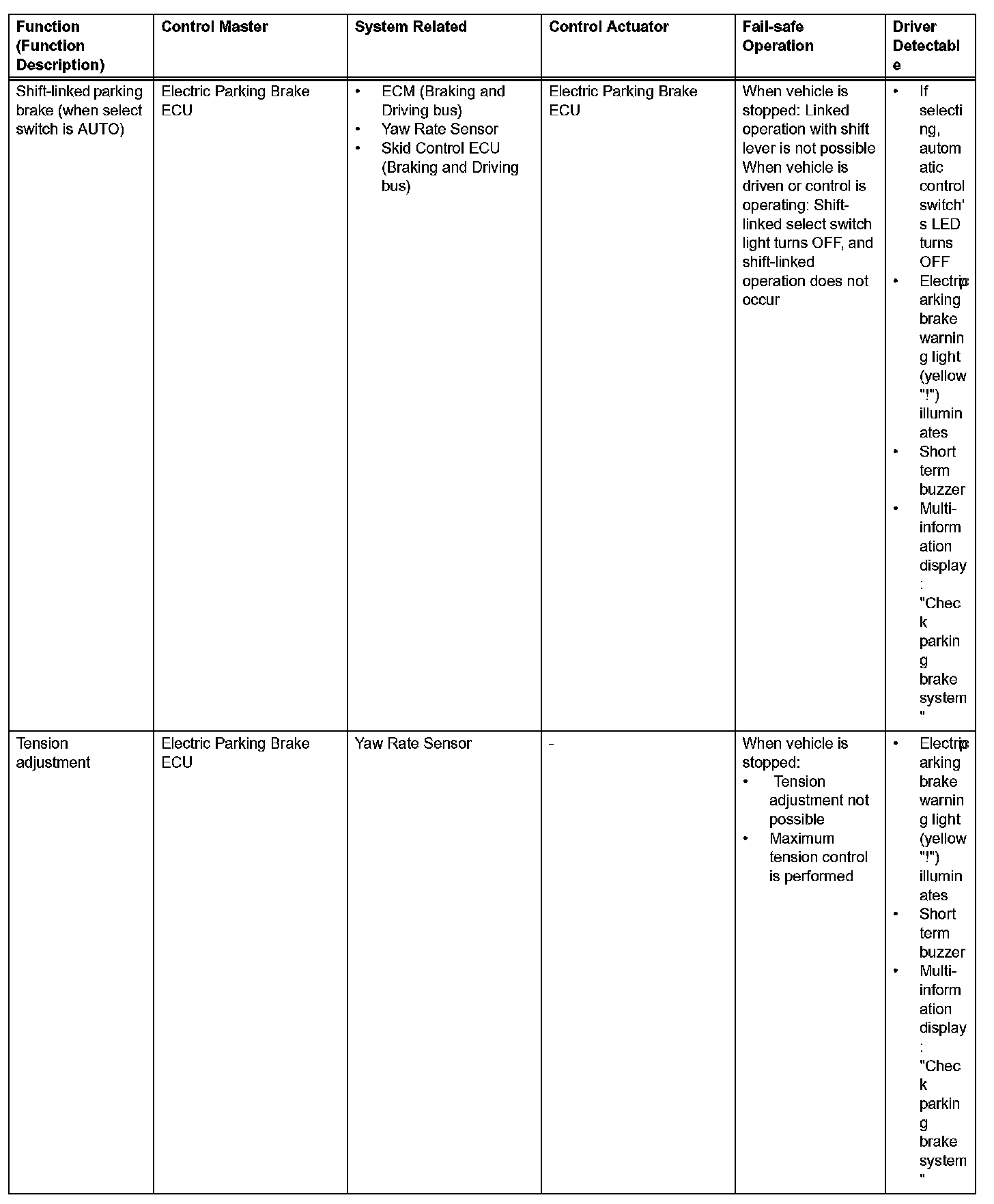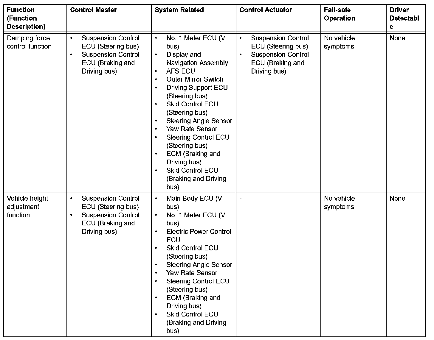 b. The table shows the effects on each system when communication is impossible. For further details, refer to each system.