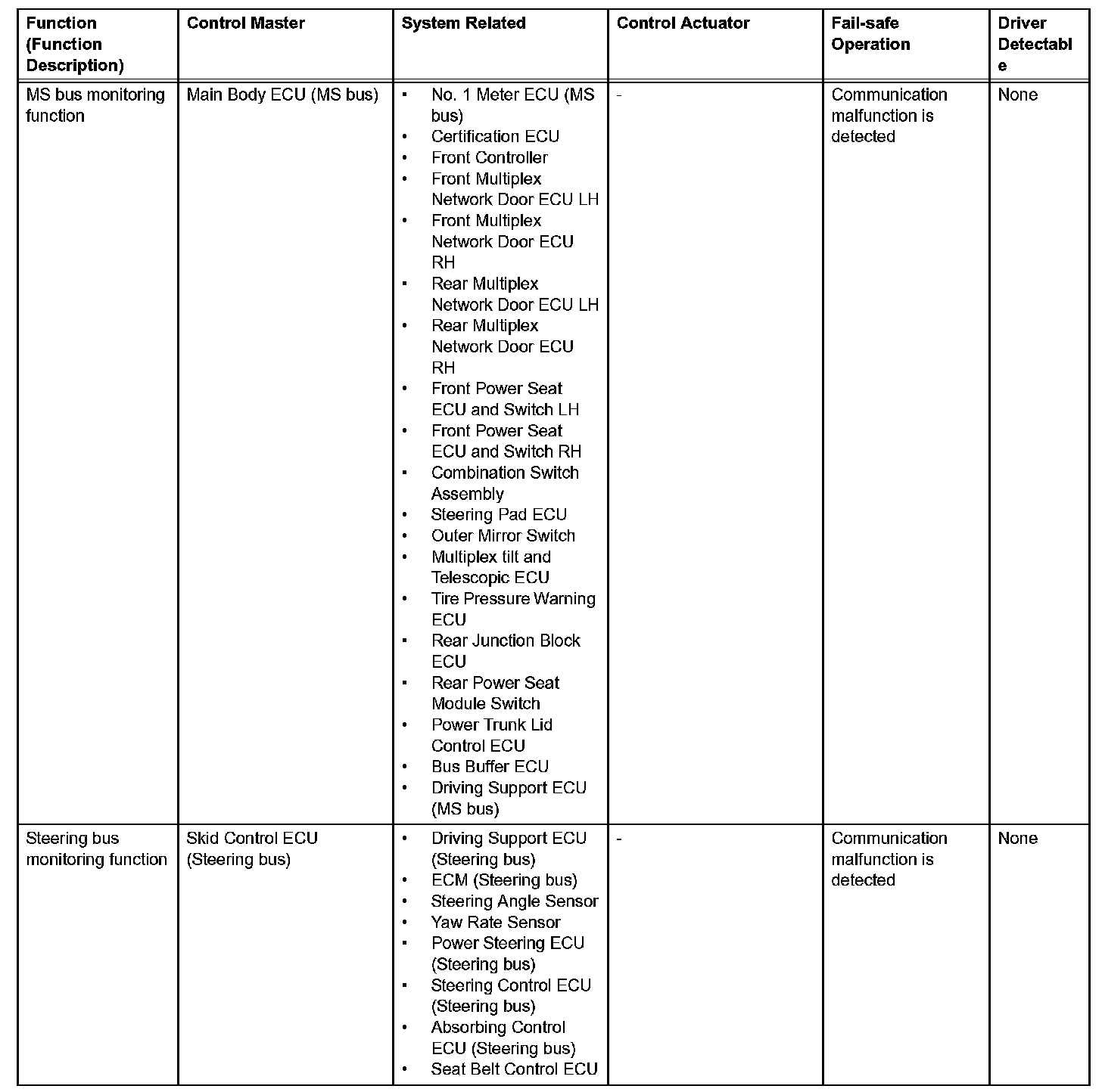 a. When communication fails in any of the main wires (communication lines) due to a short circuit or other causes, the fail-safe function, which is specified for each system, operates to prevent the system from malfunctioning.