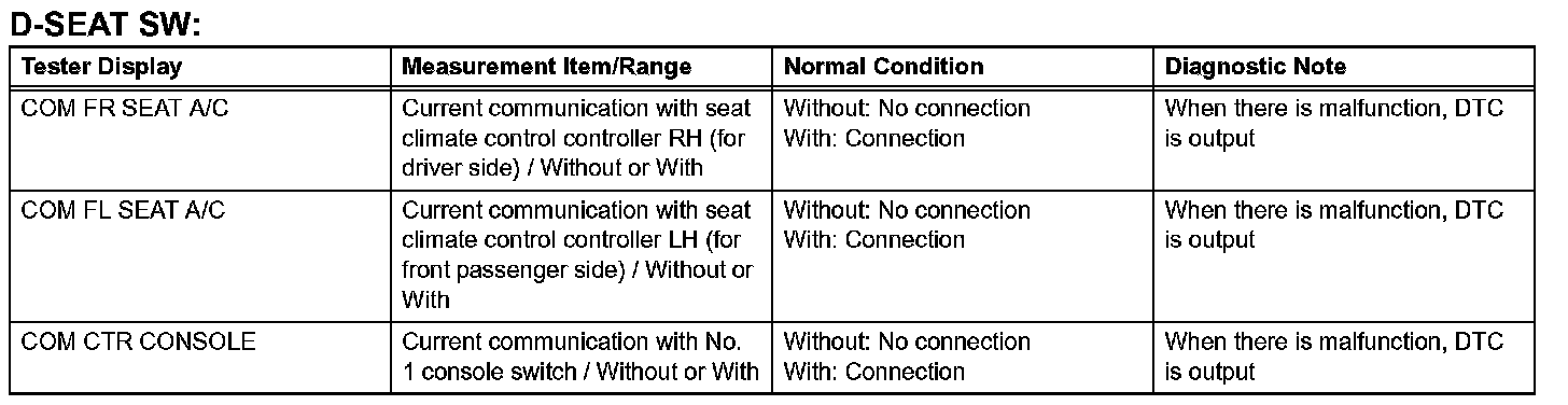 HINT: Using the intelligent tester or Techstream to read the DATA LIST allows values or status of switches, sensors, actuators and other items to be read without removing any parts. This non-intrusive inspection can be very useful because intermittent conditions or signals may be discovered before parts or wiring is disturbed. Reading the DATA LIST information early in troubleshooting is one way to save diagnostic time.