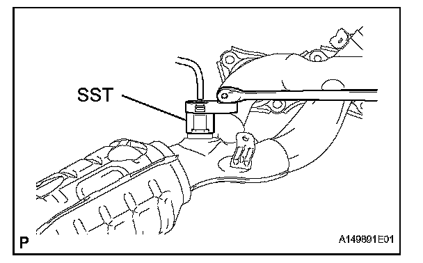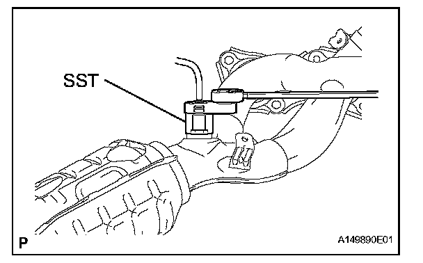 a. Using SST, remove the air fuel ratio sensor from the exhaust manifold LH.