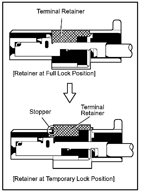 Push the terminal retainer down to the temporary lock position.