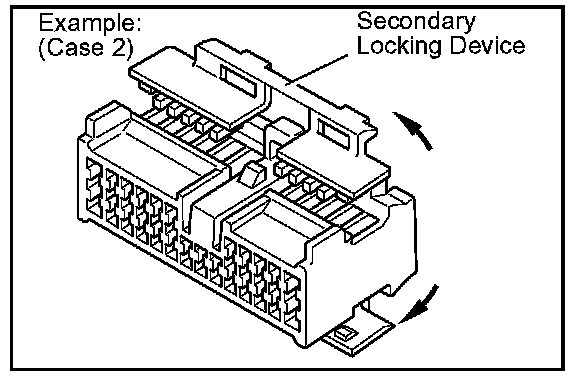 b. Use a special tool or the terminal pick to unlock the secondary locking device or terminal retainer.