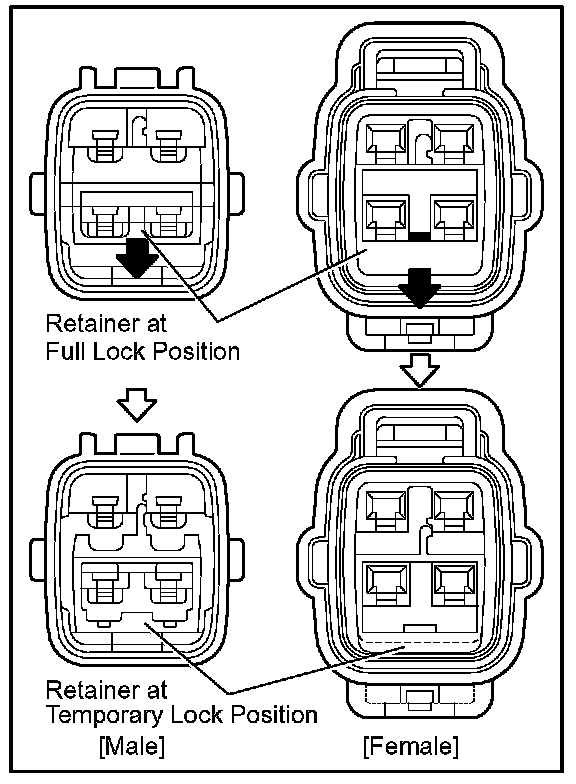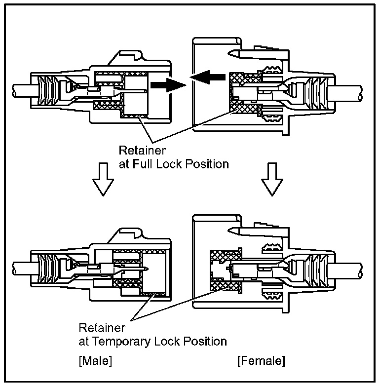 Insert the special tool into the terminal retainer access hole ( Mark) and pull the terminal retainer up to the temporary lock position.