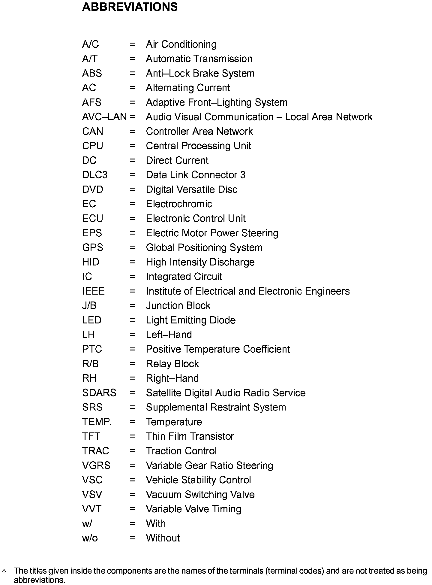 Abbreviations Used Within Diagrams