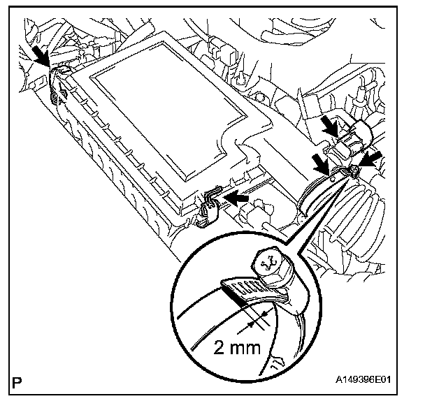 - When tightening the hose clamp, make sure the hose clamp's end is within the painted white line (width: 2 mm or 0.079 in.).