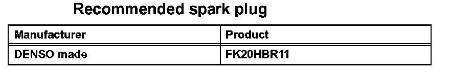 Electrode gap for a new spark plug: 1.0 to 1.1 mm (0.039 to 0.043 in.)