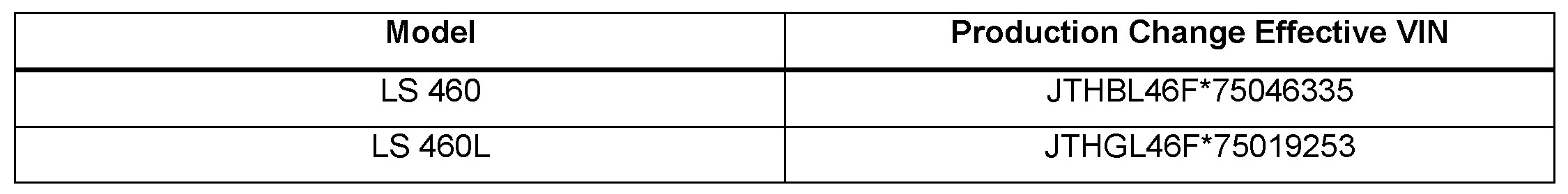 - 2007 model year LS 460/460L vehicles produced BEFORE the Production Change Effective VIN shown below.