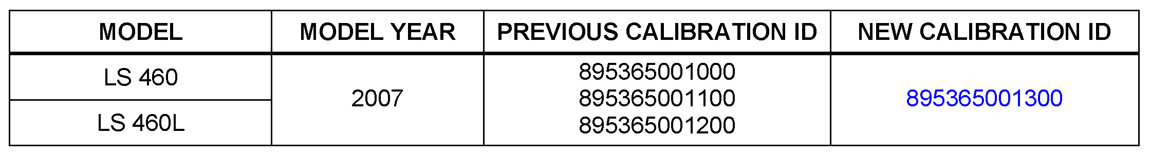 - Calibration ID(s): [Refer to the Calibration Identification Chart for the NEW CALIBRATION ID]