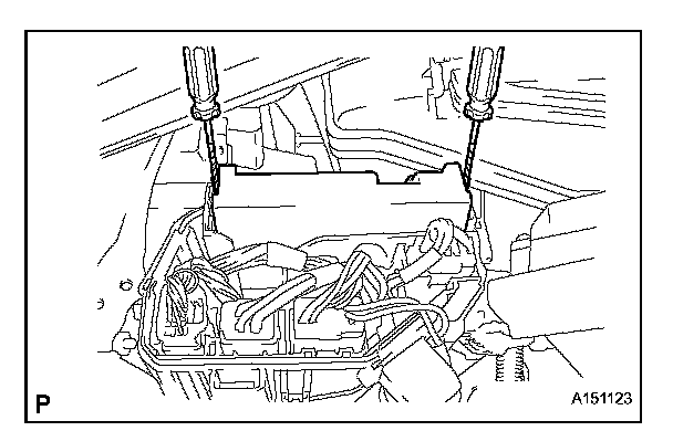 (b) Using 2 screwdrivers, detach the 2 claws and disconnect the front controller.