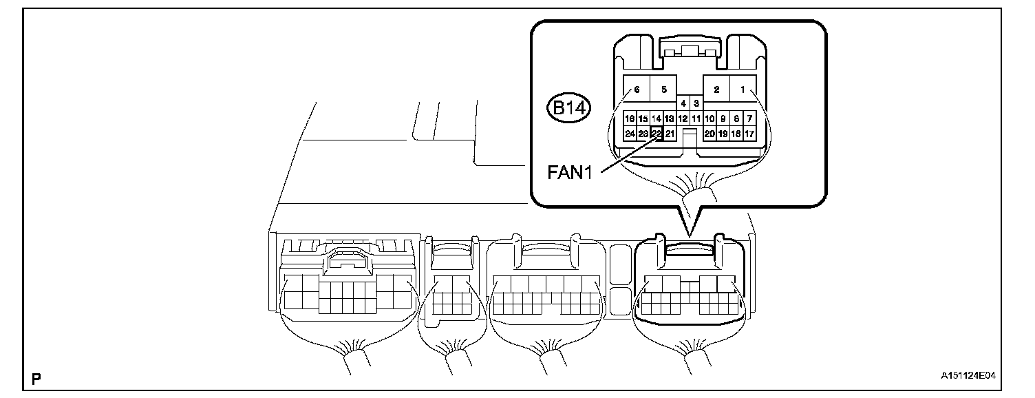 (1) Set the oscilloscope probe to the terminal B14-22 (FAN1) of the front controller.