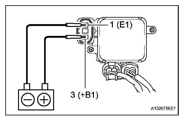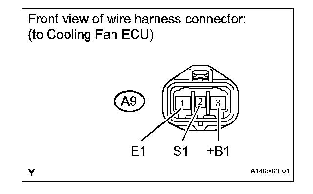 (2) Connect the battery to the cooling fan ECU at terminals 3 (+B1) and 1 (E1).