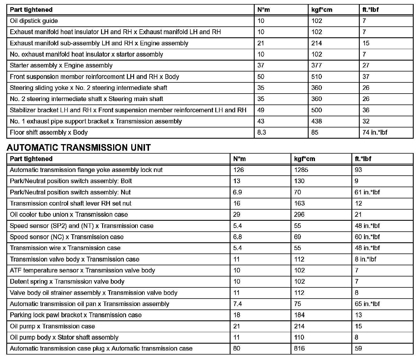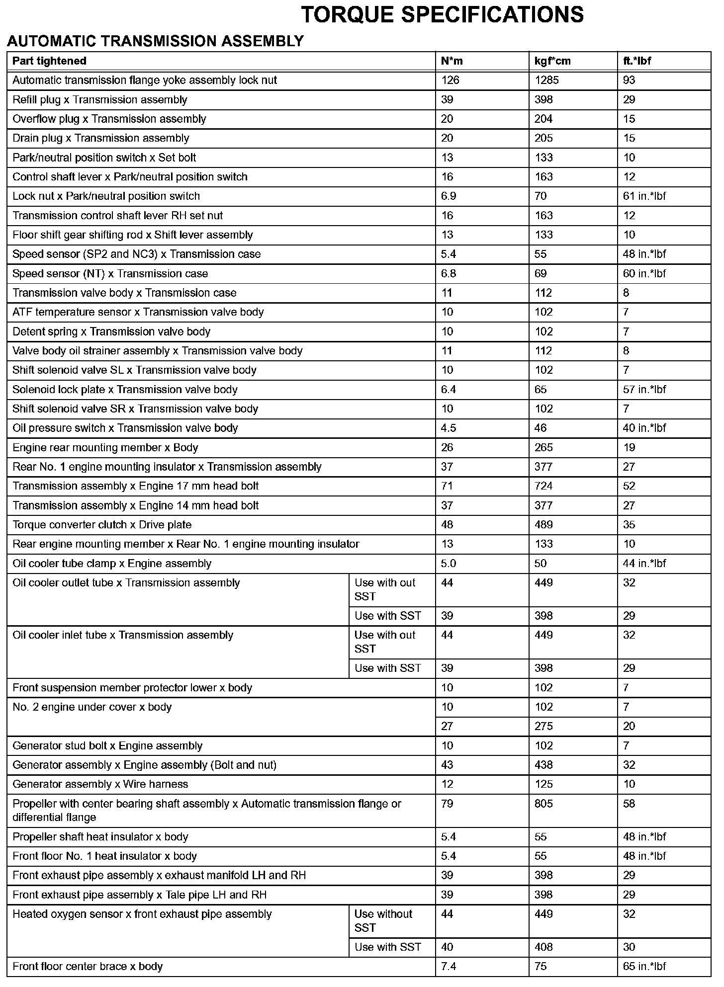 Automatic Transmission - Torque Specifications (Part 1):