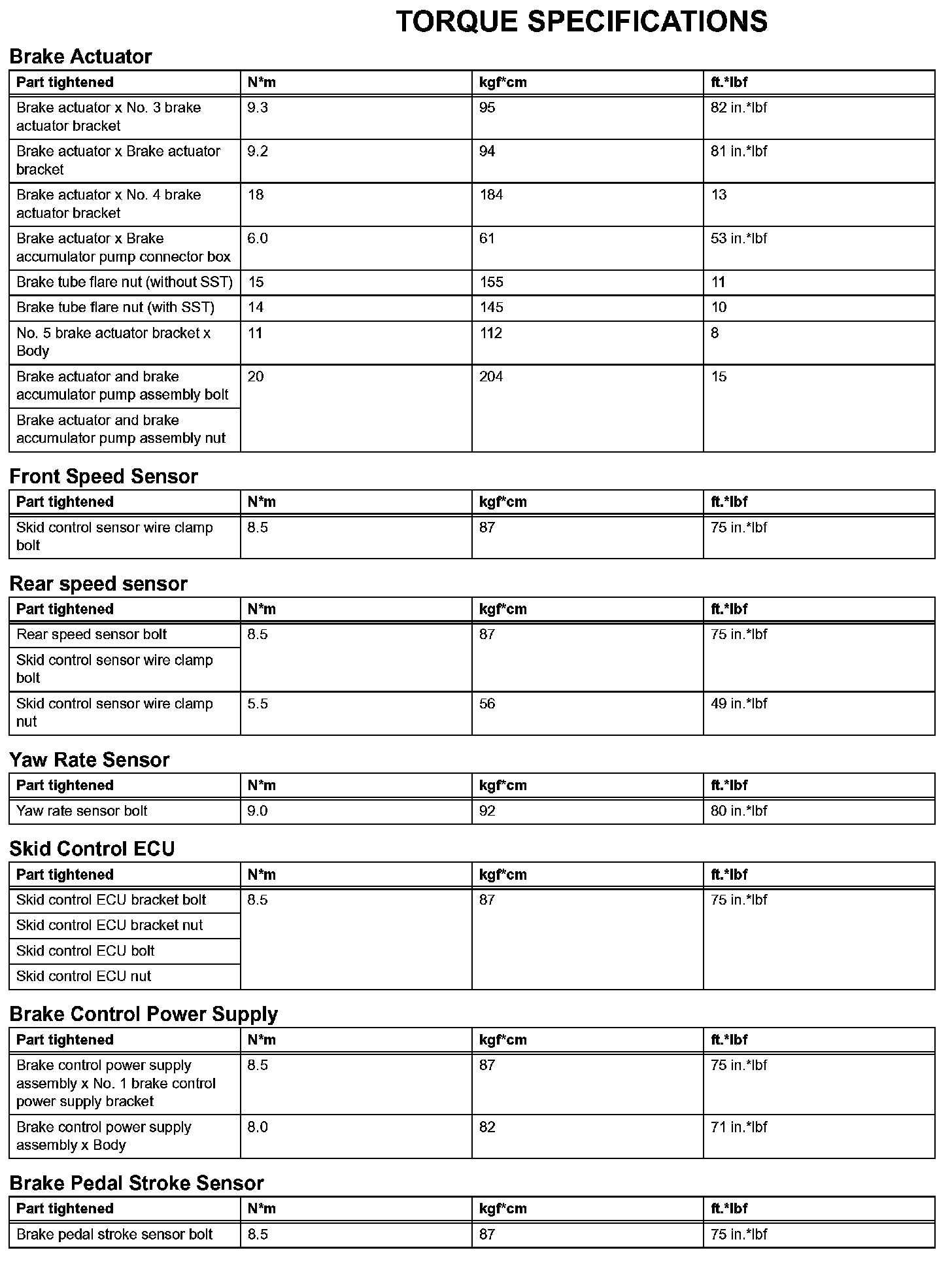 Brake Control - Torque Specifications: