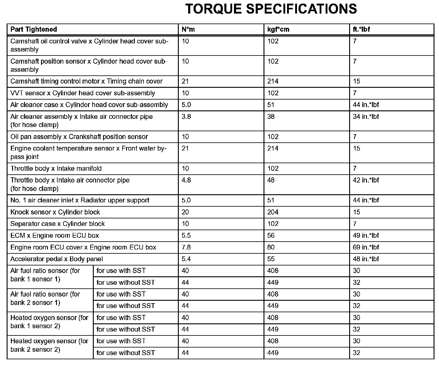 Engine Control System - Torque Specifications: