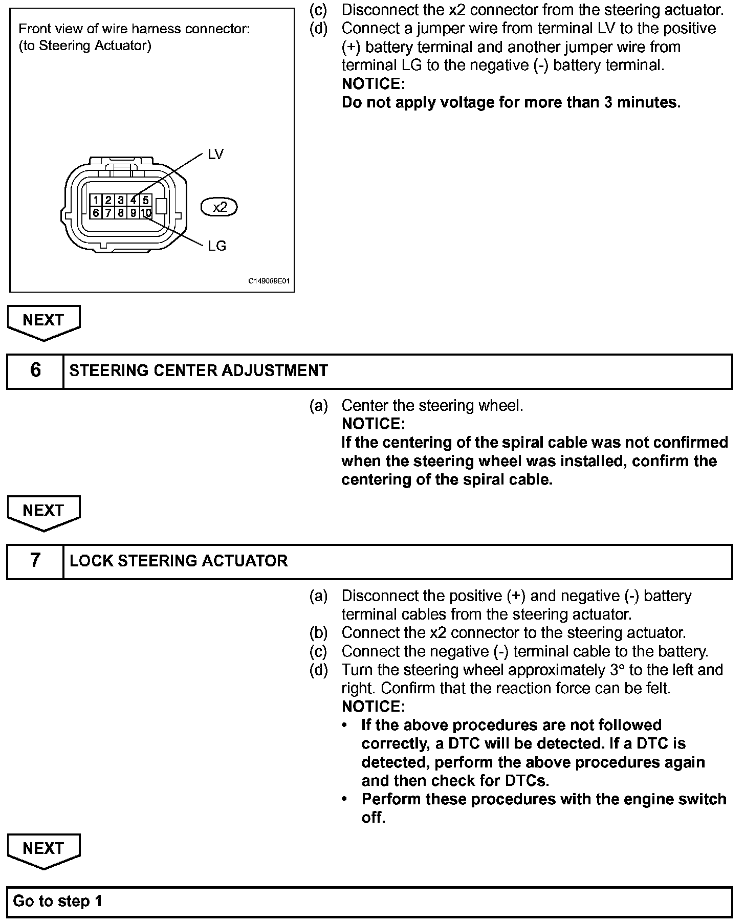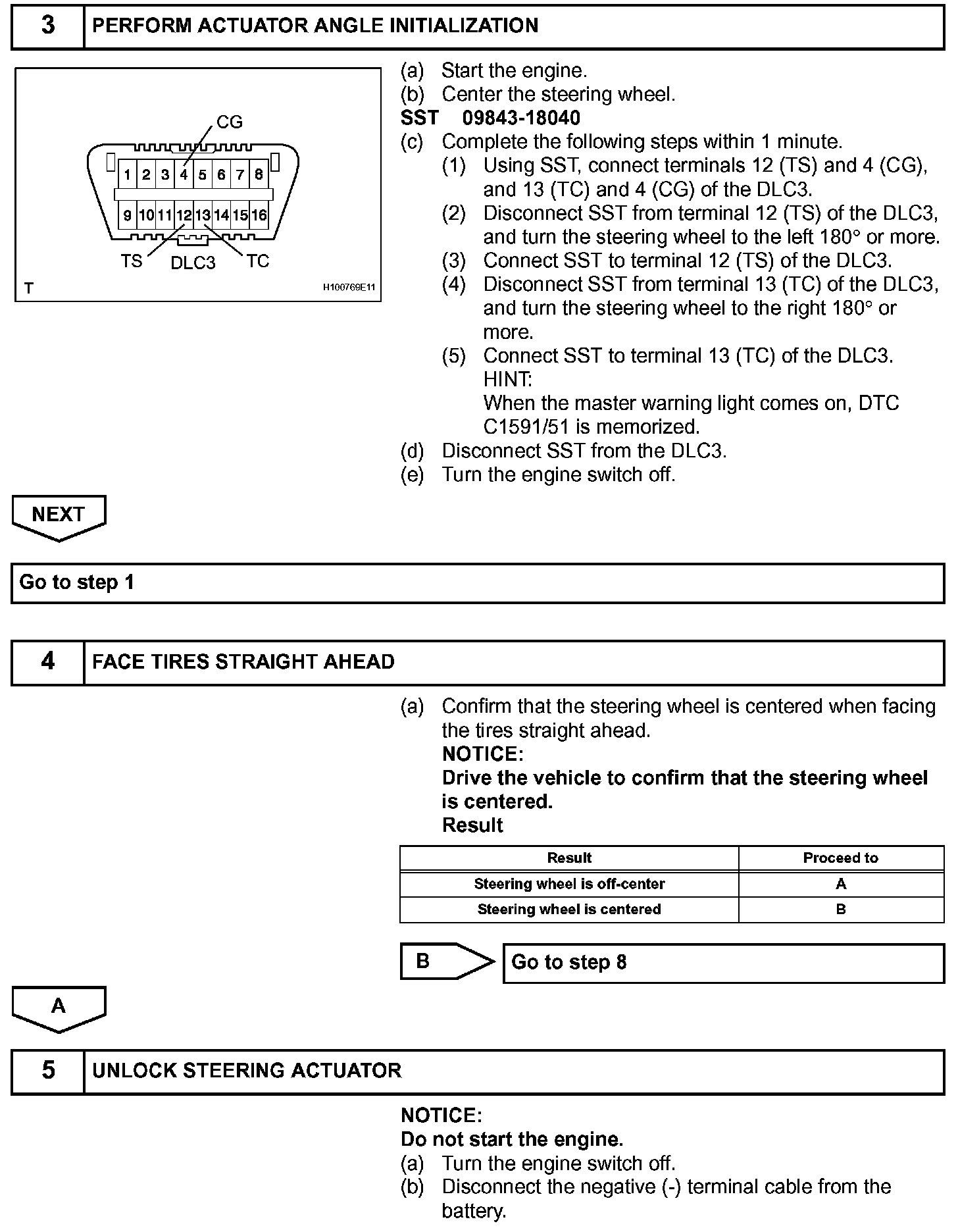 - In this step, the neutral position of the steering wheel is restored from the steering control ECU memory.