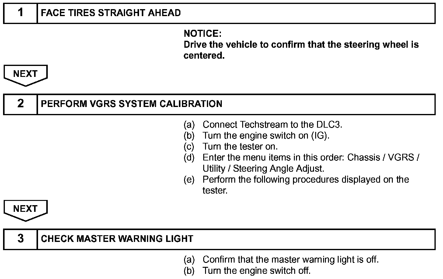 44. VGRS SYSTEM CALIBRATION PROCEDURE (USING TECHSTREAM)