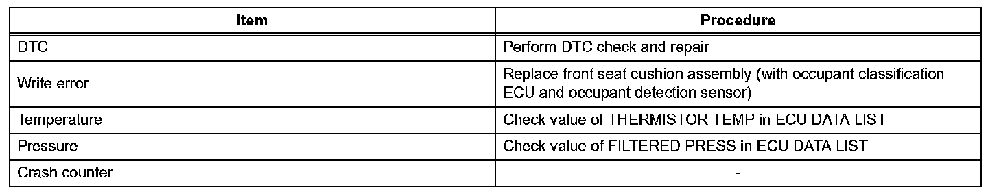 - When ECU data saving or loading operations cannot be performed, replace the front seat cushion (with occupant classification ECU and occupant detection sensor).