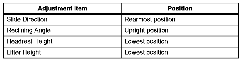 2. Adjust the seat position according to the table.