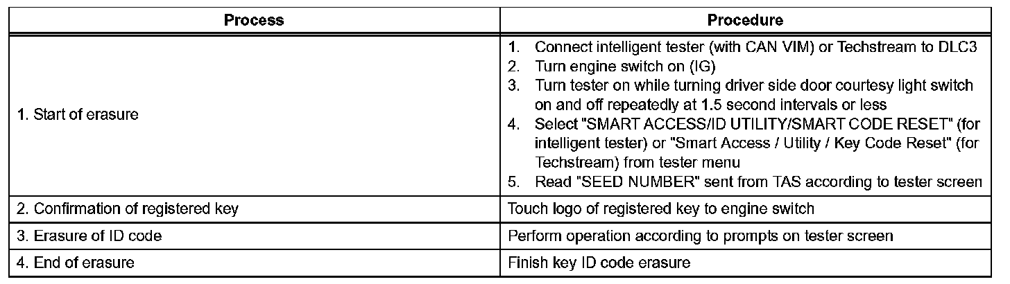 - The engine immobilizer function's ID code is the same as recognition codes for the smart access system with push-button start and the wireless transmitter. Registering an ID code enables the smart access with push-button start, the wireless door lock control function and the engine immobilizer function to be operated.