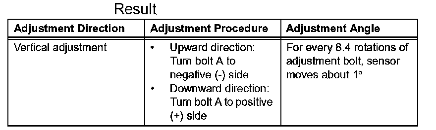 h. Recheck and readjust the vertical direction of the radar sensor.