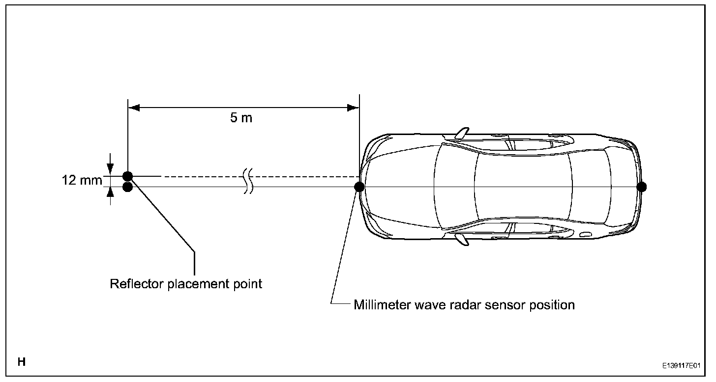 3. Using a tape measure, measure 12 mm (0.47 in.) to the left of the 5 m (16.41 ft.) position. Place the reflector at that position.
