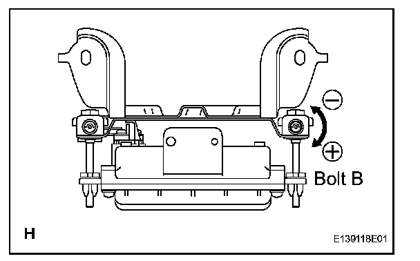 - If "LEFT SIDE: 1.0°" is displayed, the divergence is 1.0° in the left direction. Turn bolt B approximately 18.6 turns to the negative (-) side.
