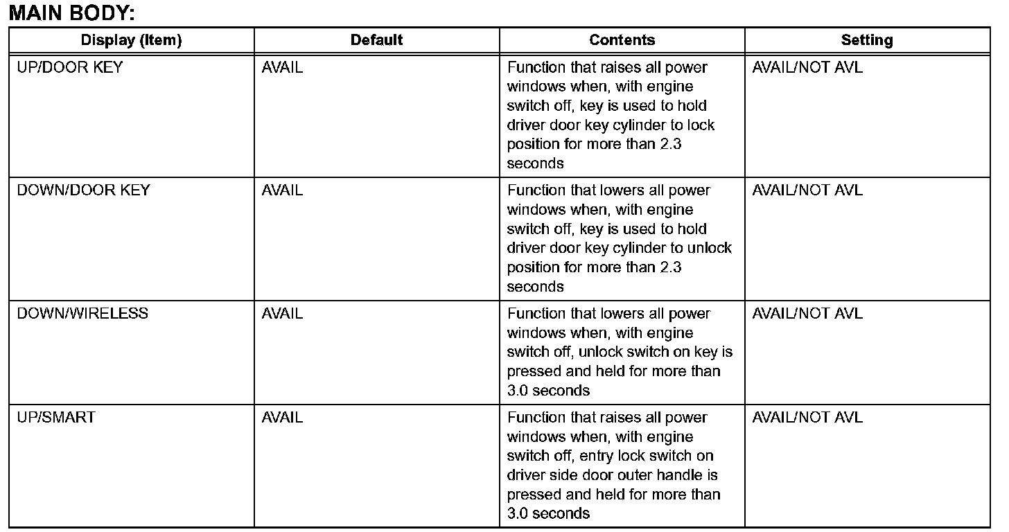CUSTOMIZE PARAMETERS1. CUSTOMIZING FUNCTION WITH INTELLIGENT TESTER OR TECHSTREAM (REFERENCE)