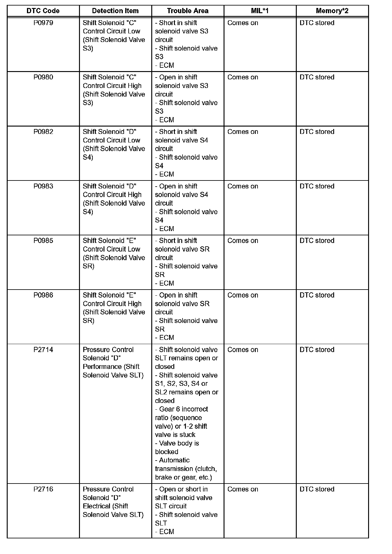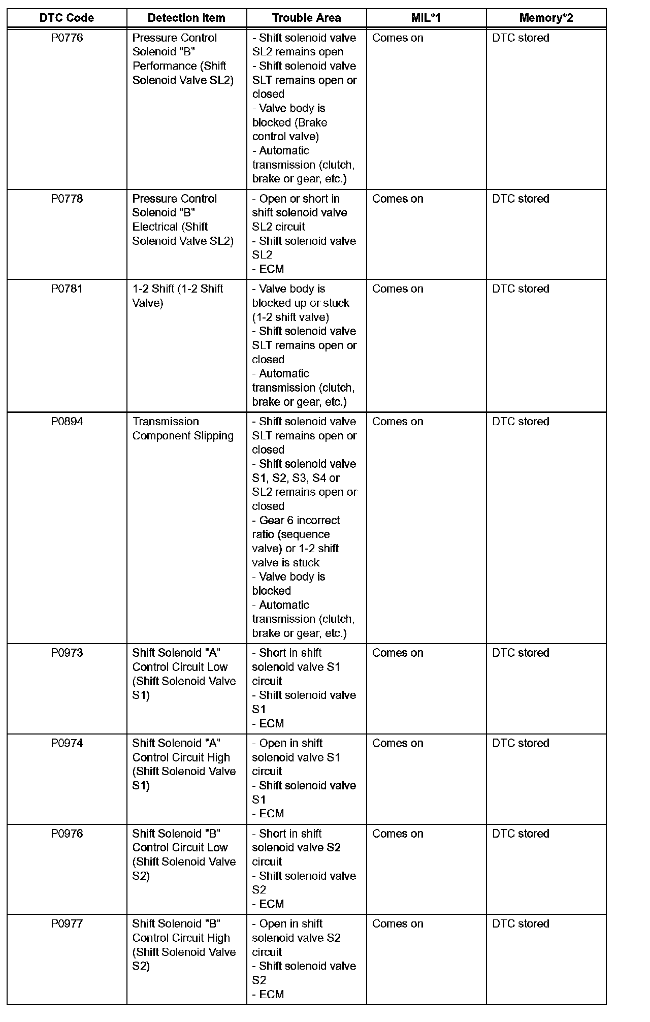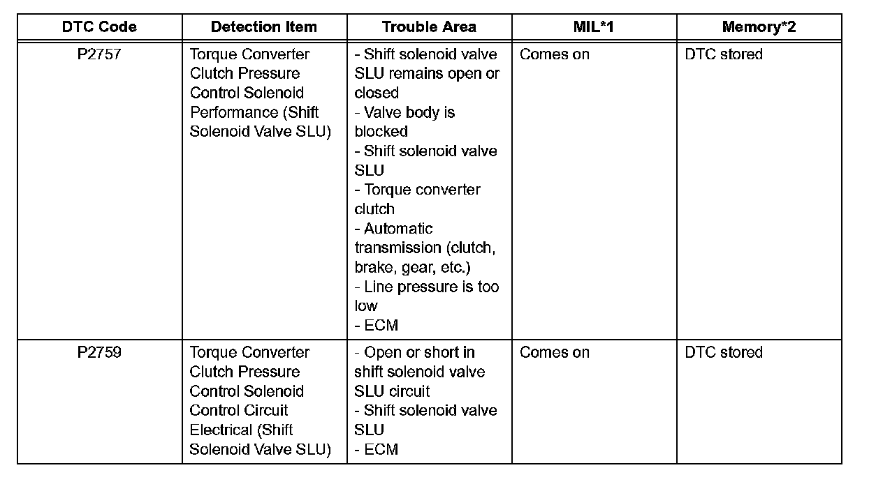 ^ *1: "Comes on" means the Malfunction Indicator Lamp (MIL) illuminates.