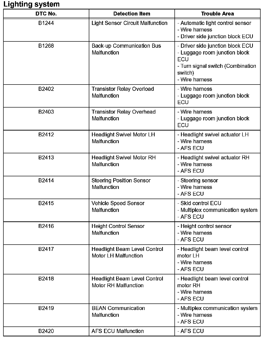 A L L Diagnostic Trouble Codes ( DTC )